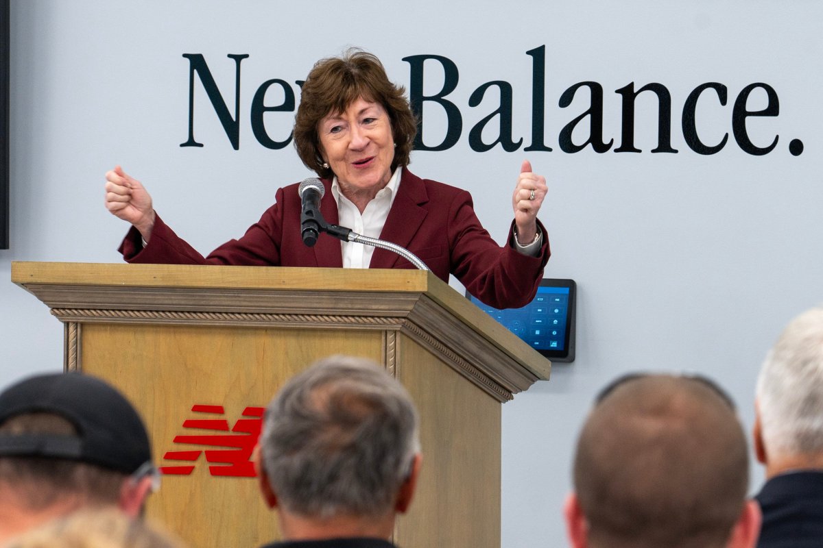 Collins and King each delivered remarks at an event celebrating the expansion of a new shoemaking facility and touting American-made products, but neither stopped for a small gaggle of assembled reporters after it ended.