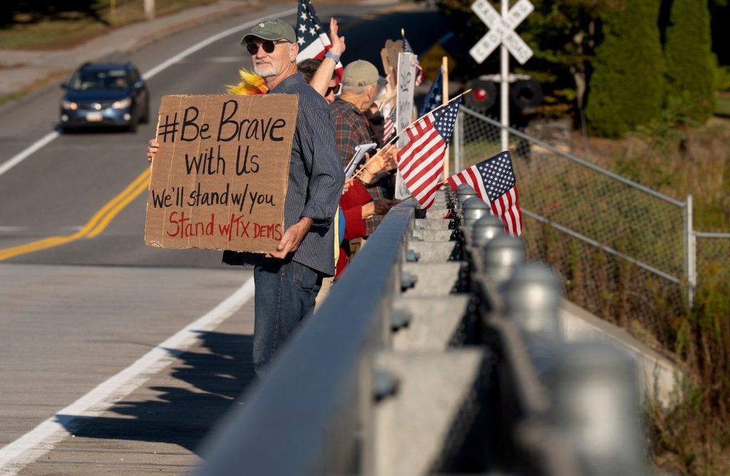 But the Visibility Brigade isn’t really setting out to change hearts or minds anyway, the group’s leaders say. That task, if it’s possible at all in an increasingly polarized America, is beyond anything they can accomplish from the side of the road. Instead, their goal is to reassure the quietly despondent that they aren’t alone, one wave at a time.