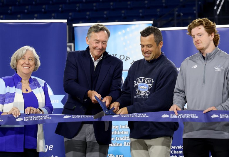 Saturday was a day to celebrate the completion of the latest phase in UMaine’s athletic facilities makeover. Along with the soccer field, the renovated Alfond Arena opened. The home of the Black Bears men’s and women’s hockey teams now features a new entryway for fans coming to games, with a new team store and concession stands. For the athletes, there are new locker rooms, meeting rooms, video rooms, training space and team lounges.