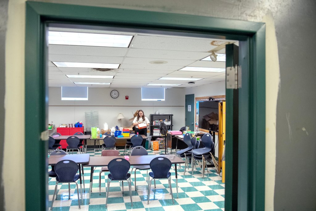 The parent pickup system is chaotic, with space for only eight cars at a time. The school still has a trash incinerator below the cafeteria, although it hasn’t been used since 2008. A lower level has been converted to storage because it has no fire exits. The two main levels are only ADA accessible from the outside, meaning a student in a wheelchair would need to exit the building to change floors.