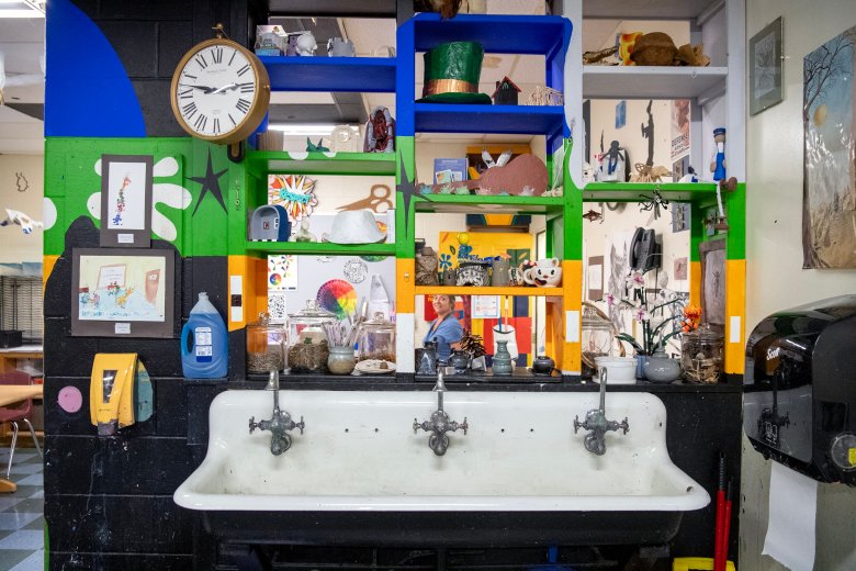 The parent pickup system is chaotic, with space for only eight cars at a time. The school still has a trash incinerator below the cafeteria, although it hasn’t been used since 2008. A lower level has been converted to storage because it has no fire exits. The two main levels are only ADA accessible from the outside, meaning a student in a wheelchair would need to exit the building to change floors.