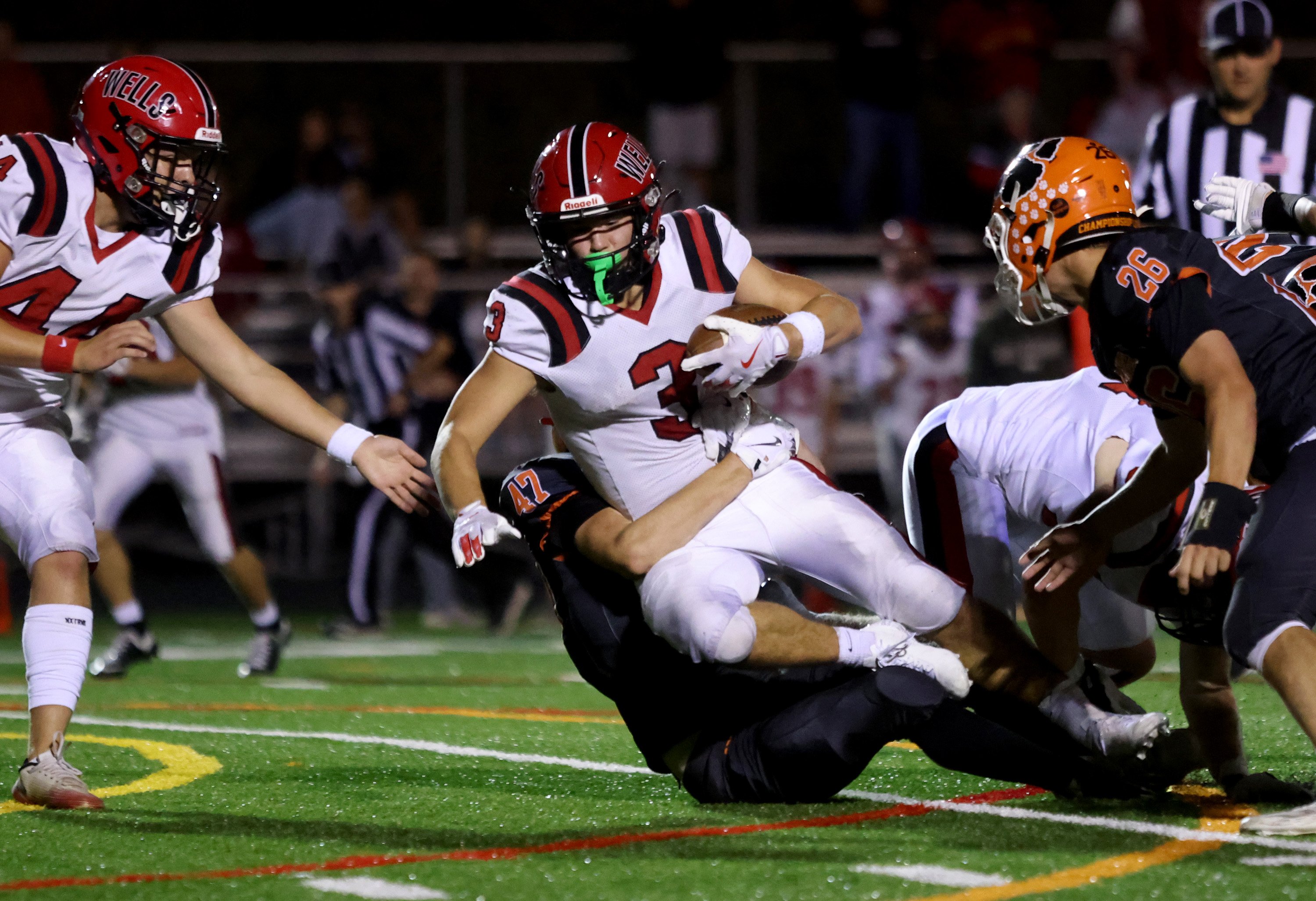 • “They have a multitude of guys that can run the ball for them. In the past at Wells, maybe it was one fullback or the halfback that was the featured guy. Really, between a couple fullbacks, a couple halfbacks and the quarterback, they really do have some skill guys running the ball. Like any Wells team, they’re physical up front. When the other team can run the ball and stop the run, that’s always a tough team to deal with.” — Leavitt coach Mike Hathaway
