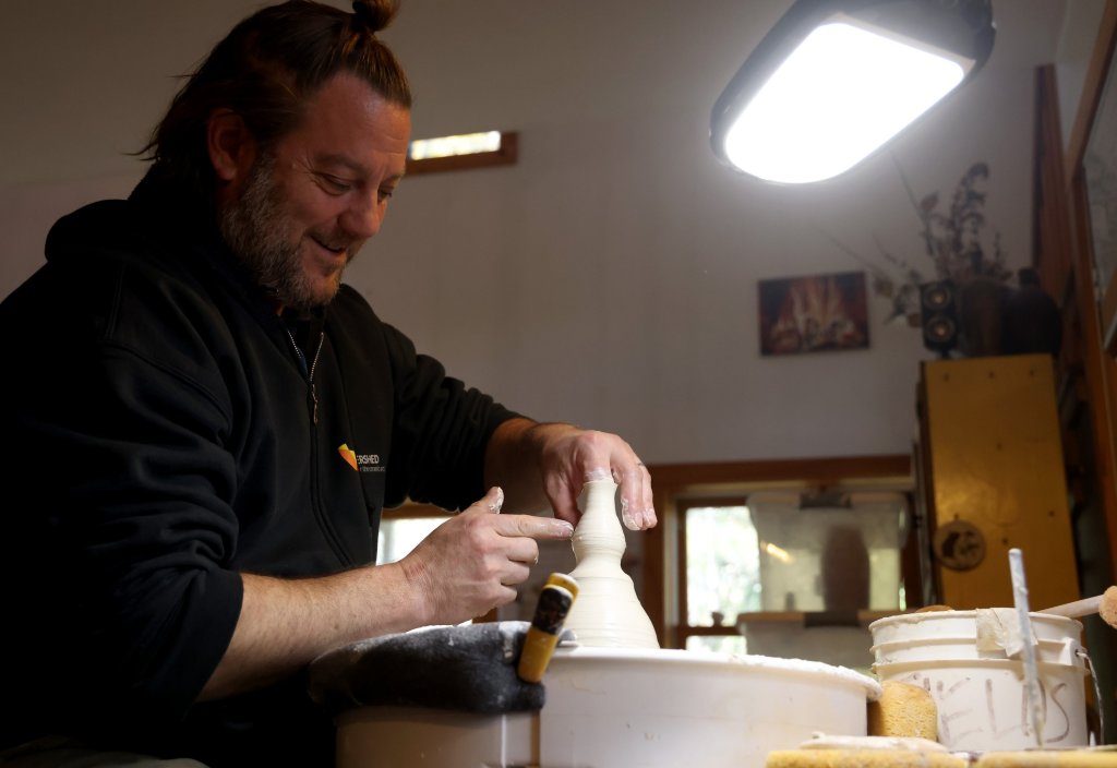 He said one of the things that makes him love making pottery is “a love for working with the earth in my hands” and the connection to the planet and nature that helps bring forward.