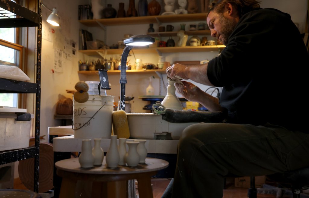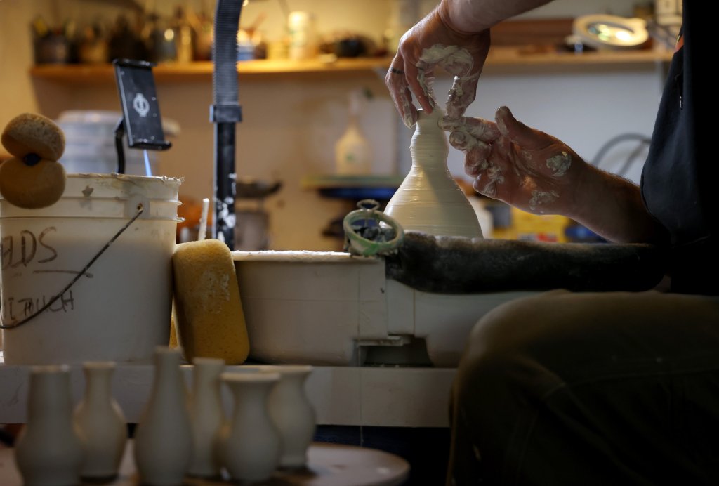 Fields got hooked on pottery when he made a coffee mug in art class as a high school junior. He fell in love with it and began selling pots and decorative menorahs at age 18. He went on to teach art in high school for almost 20 years. Now, according to the studio’s website, he splits his time between massage therapy, pottery, cooking and riding his tractor — ideally all in one afternoon.