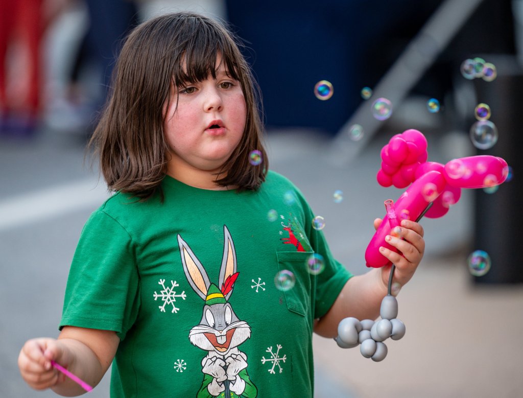 Adam Riddle, from Party Palooga, entertains and creates balloon figures for people Oct. 4 on Lisbon Street during the Lewiston Live Festival 2025. (Russ Dillingham/Staff Photographer)