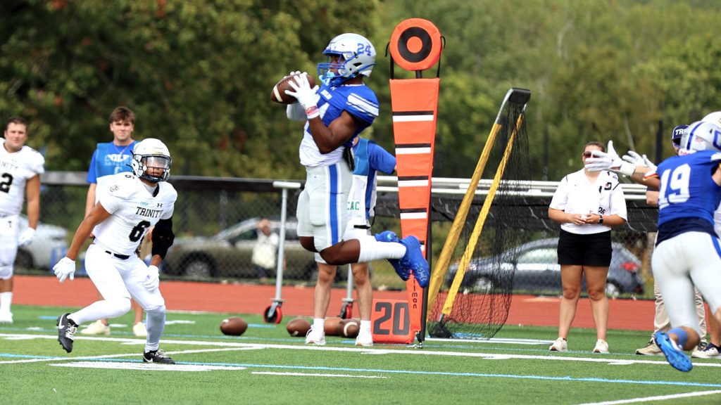 The Mules are 2-3 after a 24-7 loss to Wesleyan University on Saturday, but they’ve forced nine turnovers, including six interceptions. Sophomore defensive back Ameer White is second in the New England Small College Athletic Conference with three interceptions. Drew Ramos, Christopher Milmoe and defensive lineman Montrail Holmes each have one pick.