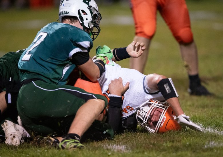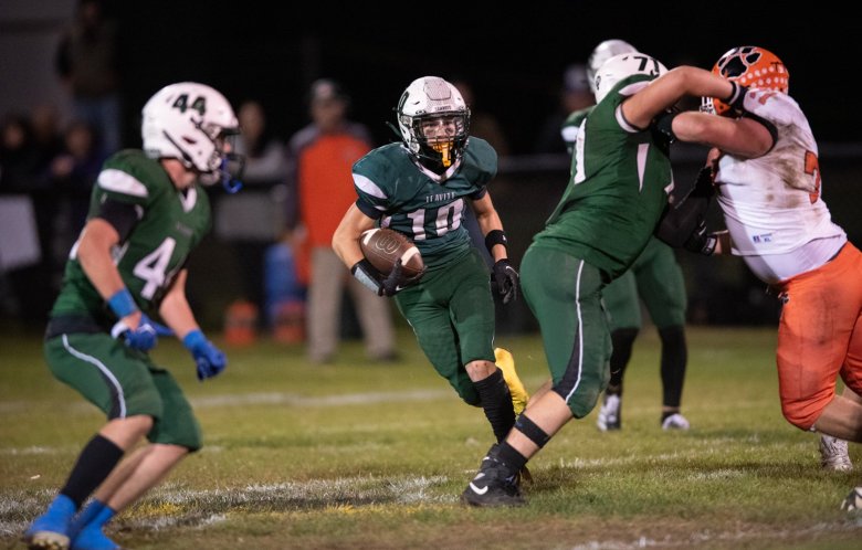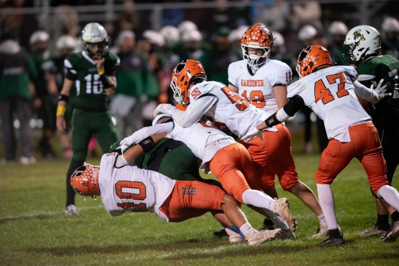 • Leavitt put Gardiner (5-1) in an early hole. Touchdowns on the first two drives gave the Hornets a 12-0 lead with two minutes left in the first quarter. Then, a hard hit by Leavitt’s Darren Flagg jarred the ball from Chase McGrane on a reception, and Cooper Morin took the fumble 53 yards for a score.