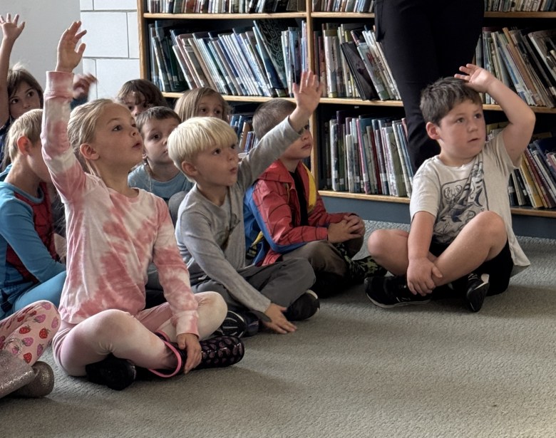 A rainy Oct. 8 kept the kids indoors and away from experiencing the fire trucks but did not dampen their enthusiasm when firefighters brought their lessons inside the schools.