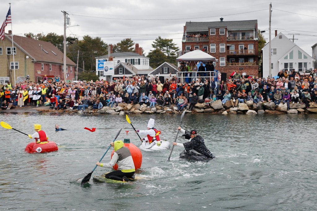 Over the holiday weekend, the annual Damariscotta Pumpkinfest and Regatta includes a pumpkin pancake breakfast, a pumpkin parade, a soapbox-style pumpkin derby where kids race pumpkins with wheels and a pie-eating contest.