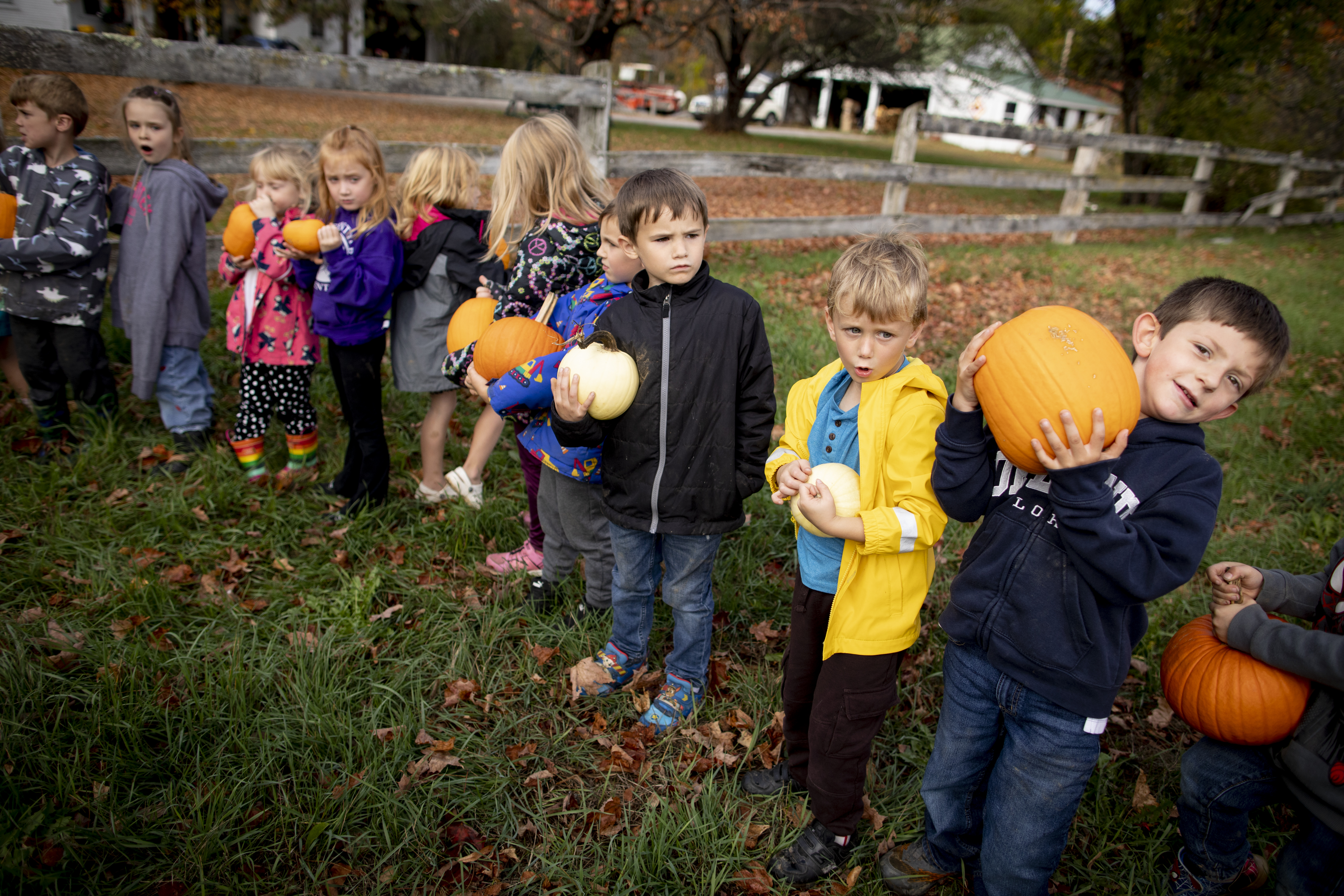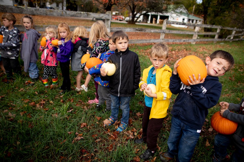 Kindergartener Athena Thibault and her Crescent Park School mates each chose a pumpkin at Swain Family Farm on Route 5 in West Bethel. (Rose Lincoln/Staff Writer)Crescent Park School kindergarteners in the classes of Erin Crockett, Heidi Bullen and Robin Kennett went to Swain Family Pumpkin Patch on Wednesday, Oct. 8. (Rose Lincoln/Staff Writer)