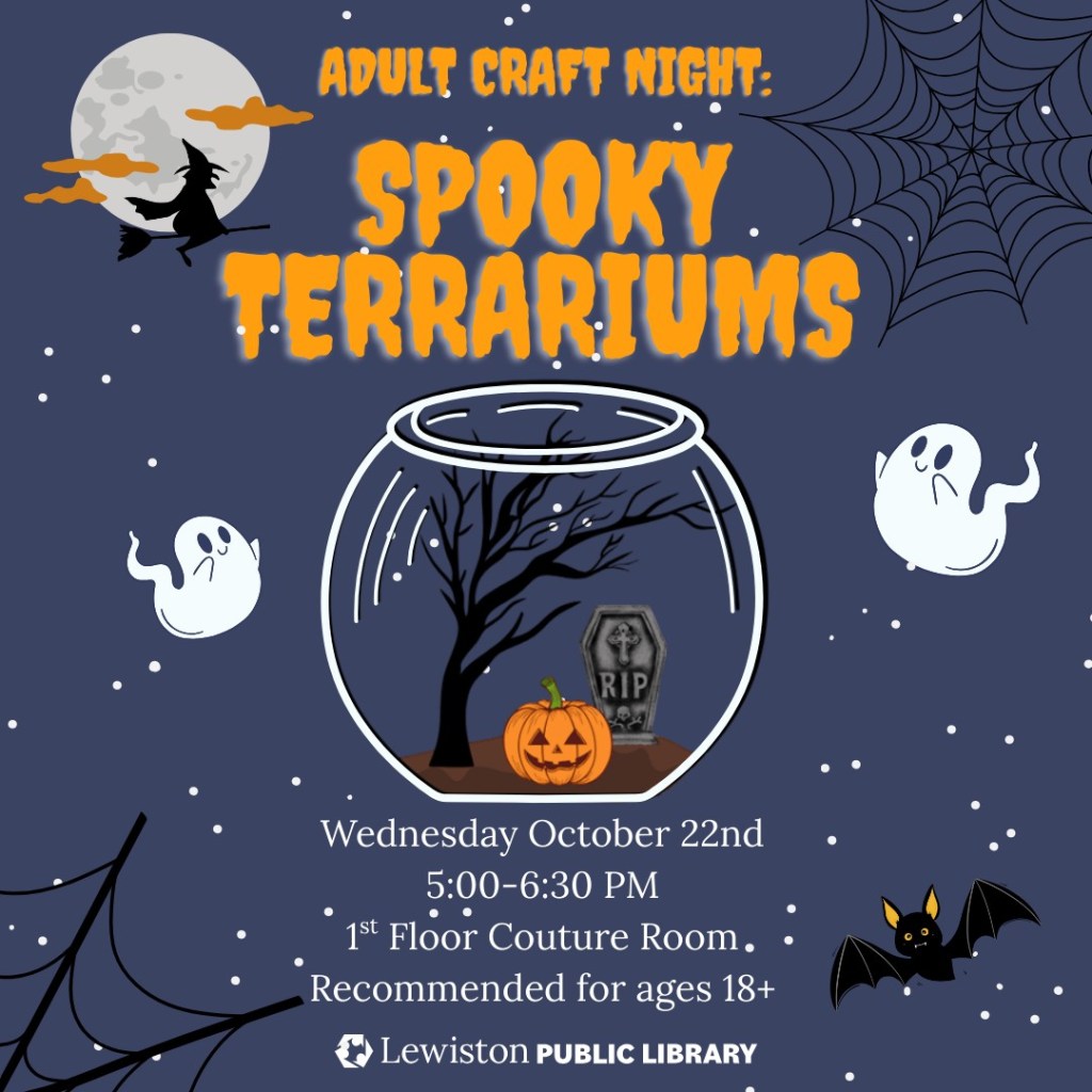 LEWISTON — On Wednesday, Oct. 22, the Lewiston Public Library will host a craft night for adults. The free public program will teach how to make spooky terrariums.