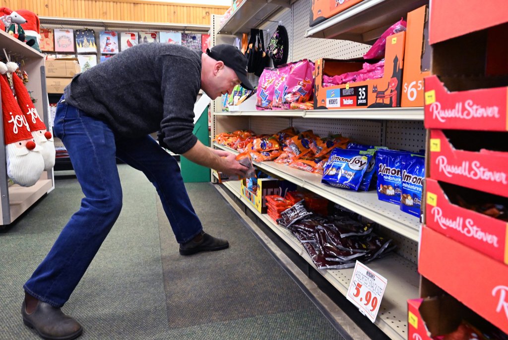 “Everything’s really expensive,” said Mackenzie Burke, a self-identified Halloween fanatic, who snagged four bags of treats at the Portland Renys on Wednesday. He said the selection at the Congress Street shop was cheaper than at the larger grocery stores.