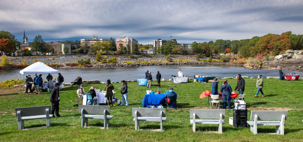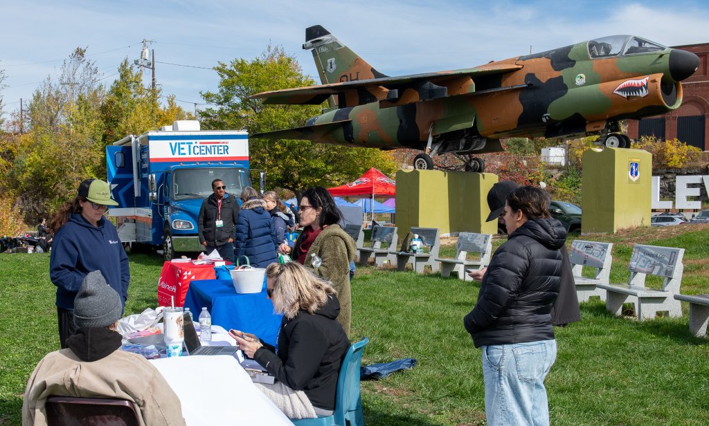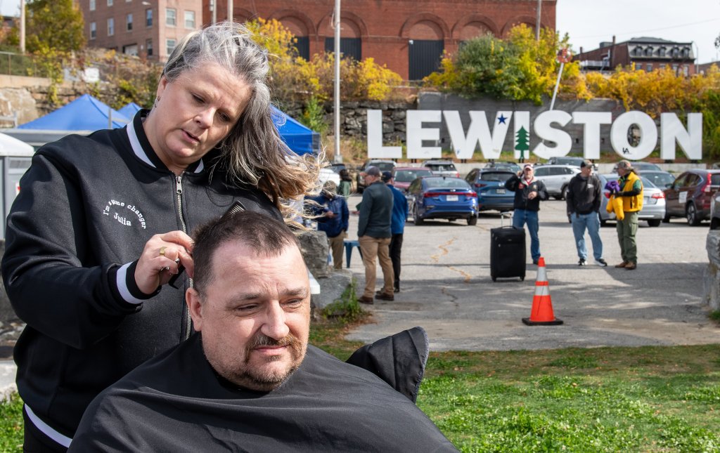 Several dozen vendors assemble Wednesday in Veterans Memorial Park on Main Street in Lewiston for the Homeless Veterans Mobile Stand Down held annually by the Maine Bureau of Veterans Services. In addition to free haircuts, food and counseling, veterans were offered long- and short-term housing opportunities. The first Mobile Stand Down this year was in Bangor, with Portland and Augusta to follow Lewiston’s event. (Russ Dillingham/Staff Photographer)Keith Batson receives a free haircut Wednesday from Julia Gomez during the Homeless Veterans Mobile Stand Down in Veterans Memorial Park on Main Street in Lewiston. Gomez, who works for Sport Clips Hair Salon, was one of several dozen vendors at the event sponsored annually by the Maine Bureau of Veterans Services. Food, counseling and housing opportunities also were offered. (Russ Dillingham/Staff Photographer)Workers from Preble Street Veterans Housing Services work on a laptop and phones Wednesday to secure temporary housing for a homeless veteran, front left, during the Homeless Veterans Mobile Stand Down at Veterans Memorial Park on Main Street in Lewiston. Venders offered services such as free haircuts and food, plus counseling for housing opportunities. The Mobile Stand Down is held annually by the Maine Maine Bureau of Veterans Services. (Russ Dillingham/Staff Photographer)