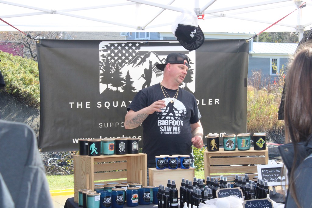 Steve Barnard of The Squatchy Chandler traveled from Tewksbury, Massachusetts, to sell his wares. He and his wife, Heather, support Clear Path for Veterans through their business. Clear Path supports veterans through a wide range of programs such as building homes, training support dogs, and addressing PTSD.
