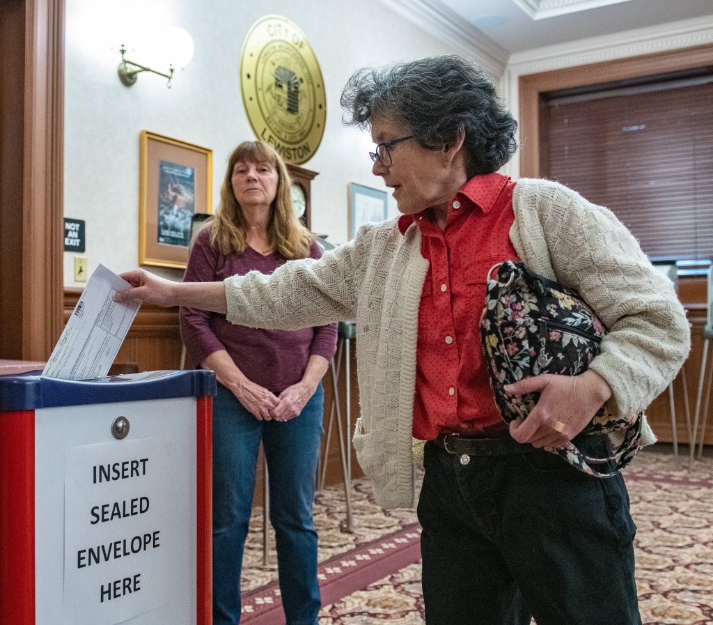 In Lewiston, Maureen Perry was one of three people waiting in line to vote when Kathy Montejo, city clerk and registrar of voters, opened the doors in the morning.