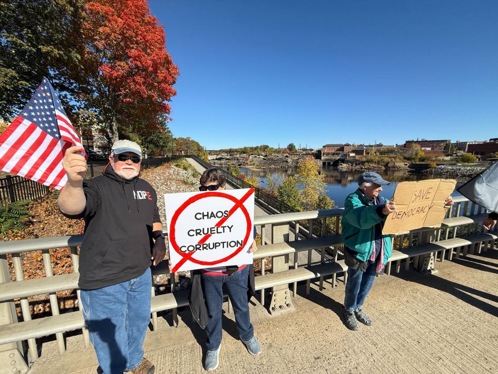 Standing on Longley Bridge, Emma Medeiros of Lewiston said she put the actions of President Trump alongside actions by King George III that were decried in the Declaration of Independence. She said she found them stunningly similar.