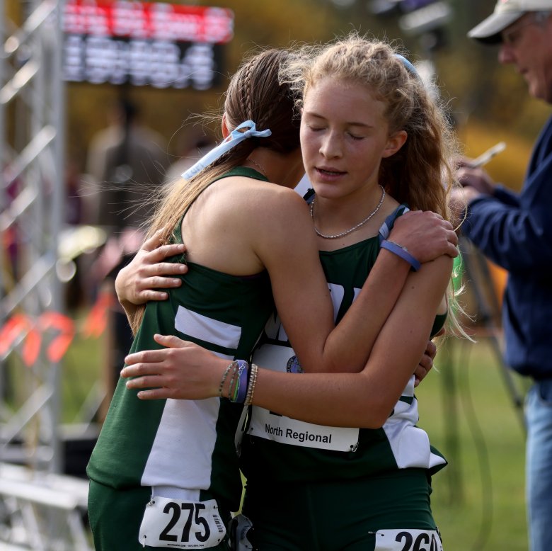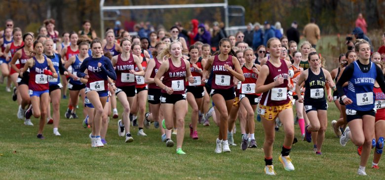 The Class A boys race was much tighter. Lewiston’s Enzo Giampaolo got out to a blazing start but was soon overtaken by Bangor’s Samuel Bergmark. Bergmark won in 15:57.70, followed by Hampden’s Asher Valentine (16:02.51), Edward Little’s Harper Borden (16:15.31) and Giampaolo (16:25.13).