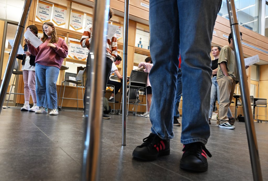 Junior Willow Halpin is the president of Interact Club, which coordinates the mock election at Morse and provides the student poll workers. She said engagement in this referendum vote is nothing like last year’s mock presidential election, when students formed lines to cast their ballots. She said her peers definitely have less solidified opinions on the questions.