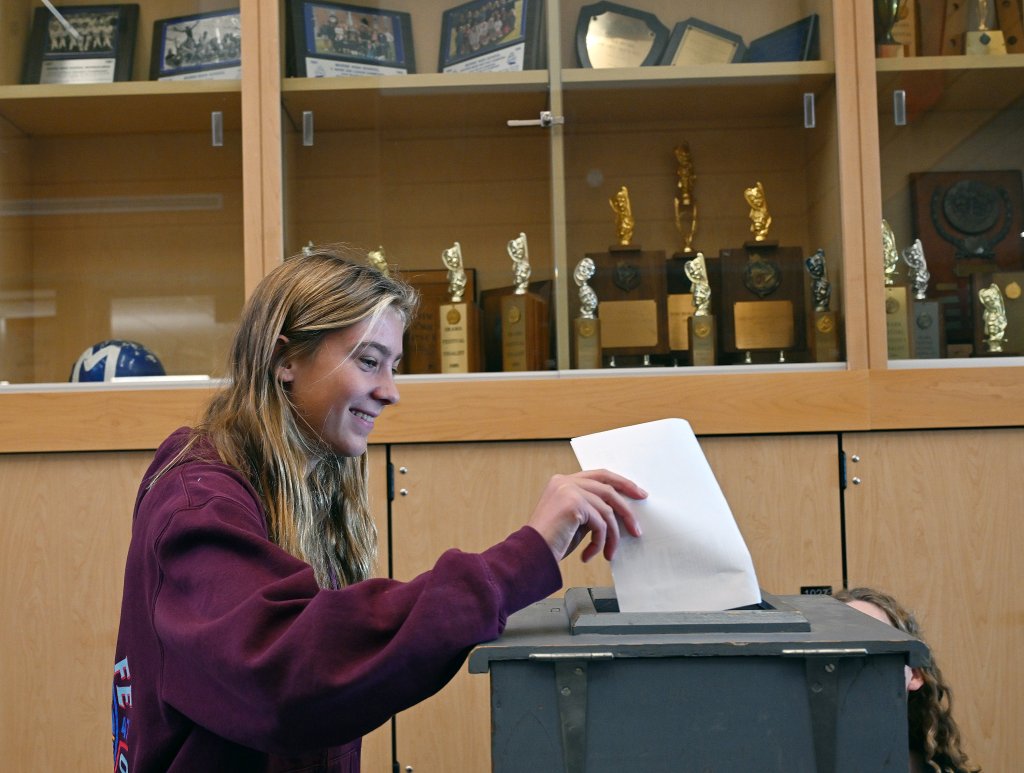 “We know that when students practice voting, they are more likely to vote,” said Secretary of State Bellows, who made a stop at Morse and a few other schools that are holding mock elections. “Which is something that’s really important, because certainly the future of our state and our nation lies with our young people.”