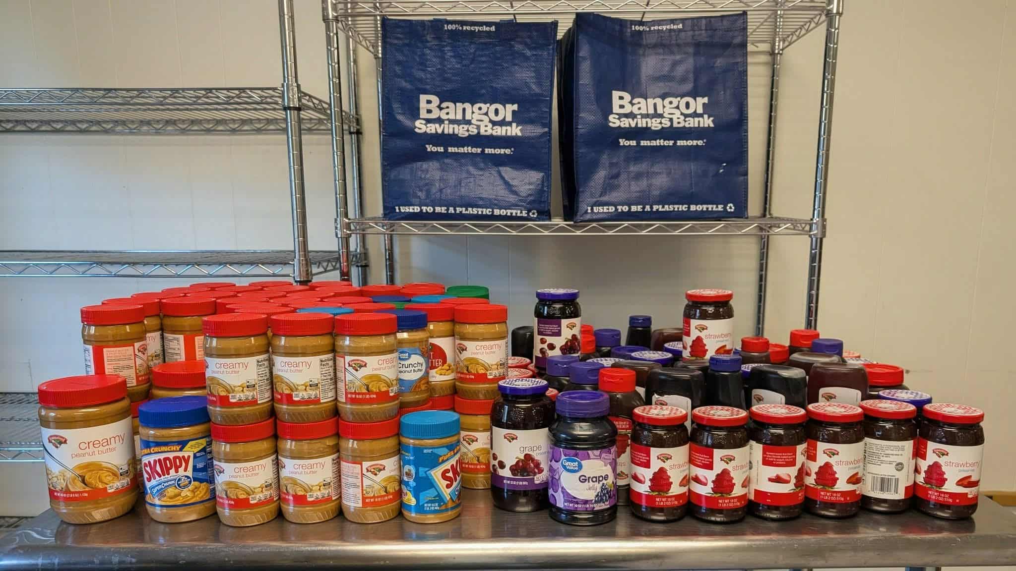Another way to support the food pantry and food insecure neighbors is through the Adopt-A-Shelf program. A local individual or organization collects goods, often of certain kinds or categories of foods, to deliver to the food pantry. Bangor Savings Bank recently made a hefty donation through its peanut butter and jelly drive.