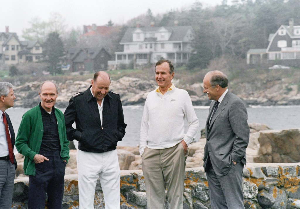 President George H.W. Bush walks with top-level advisers after a meeting at his vacation home in Kennebunkport on May 19, 1989. From left: National Security Adviser Brent Scowcroft; Admiral William Crowe, head of the Joint Chiefs of Staff; President Bush; and Secretary of Defense Dick Cheney. (Ron Edmonds/Associated Press)President George H.W. Bush meets with key advisers on the Middle East situation at his home in Kennebunkport in August 1990. Seated are, clockwise from right foreground, Defense Secretary Dick Cheney; Chief of Staff John Sununu; President Bush; Chairman of the Joint Chiefs of Staff Colin Powell; Deputy National Security Adviser Bob Gates; National Security Adviser Brent Scowcroft; and Deputy Secretary of State Lawrence Eagleburger. (Carol T. Powers/Associated Press)President George Bush holds a press conference on the grounds of his Kennebunkport vacation home, on Aug. 8, 1992, as Secretary of Defense Dick Cheney, center, and Assistant Secretary of State Lawrence Eagleburger, right, look on. (Greg Gibson/Associated Press)Then-vice presidential candidate Dick Cheney addresses workers at Portland Valve Company in South Portland, a defense contractor, during a visit on Sept. 7, 2000. (Doug Jones/Staff Photographer)Cheney addresses workers at Portland Valve Company in South Portland, a defense contractor, on Sept. 7, 2000. (Doug Jones/Staff Photographer)Republican vice presidential candidate Dick Cheney greets an audience of supporters at a campaign rally at Southern Maine Technical College in South Portland on Nov. 3, 2000. (John Ewing/Staff Photographer)Vice President Dick Cheney and gubernatorial hopeful Peter Cianchette in South Portland during a GOP event on Oct. 21, 2002. The vice president was in Maine stumping for Maine Republicans. (Herb Swanson/Staff Photographer)Vice President Dick Cheney and gubernatorial hopeful Peter Cianchette in South Portland during a GOP event on Oct. 21, 2002. (Herb Swanson/Staff Photographer)Sen. Susan Collins, R-Maine, left, takes the oath of office with Vice President Dick Cheney, right, during a mock swearing in ceremony in the Old Senate Chamber on Capitol Hill in Washington on Jan. 7, 2003. (Evan Vucci/Associated Press)Vice President Dick Cheney waves to the media at the Portland International Jetport on Sept. 18, 2006. Cheney was in Maine for a private fundraiser. (Shawn Patrick Ouellette/Staff Photographer)