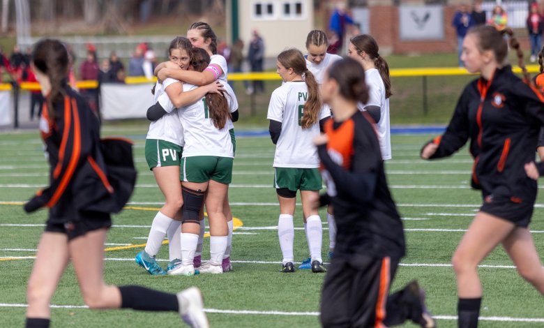 Penobscot Valley celebratees after beating Ashland 2-0 in the Class D girls soccer state championship game on Saturday in Hermon. (Anna Chadwick/Staff Photographer)