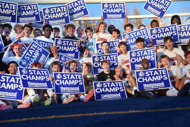 Scarborough poses for photos after winning the Class A title. (Derek Davis/Staff Photographer)