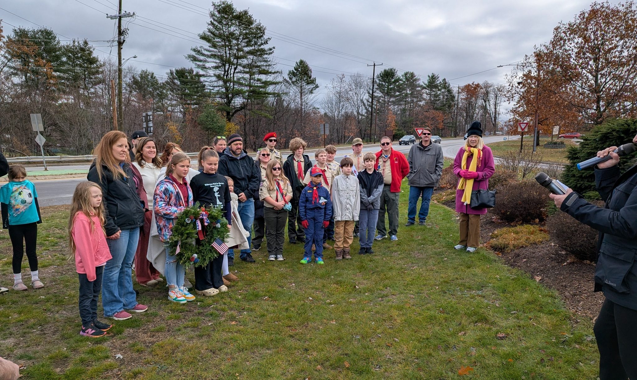“I am proud to have led a ceremony to honor our veterans today as president of the Mt. Blue Area Garden Club,” said club President Erica Haywood. “Local Girl Scouts laid a hand-decorated wreath at our Blue Star Memorial Highway Marker. Thanks to the American Legion, the Farmington Police, and our local Boy and Girl Scouts and their leaders. The price of freedom is not free.”