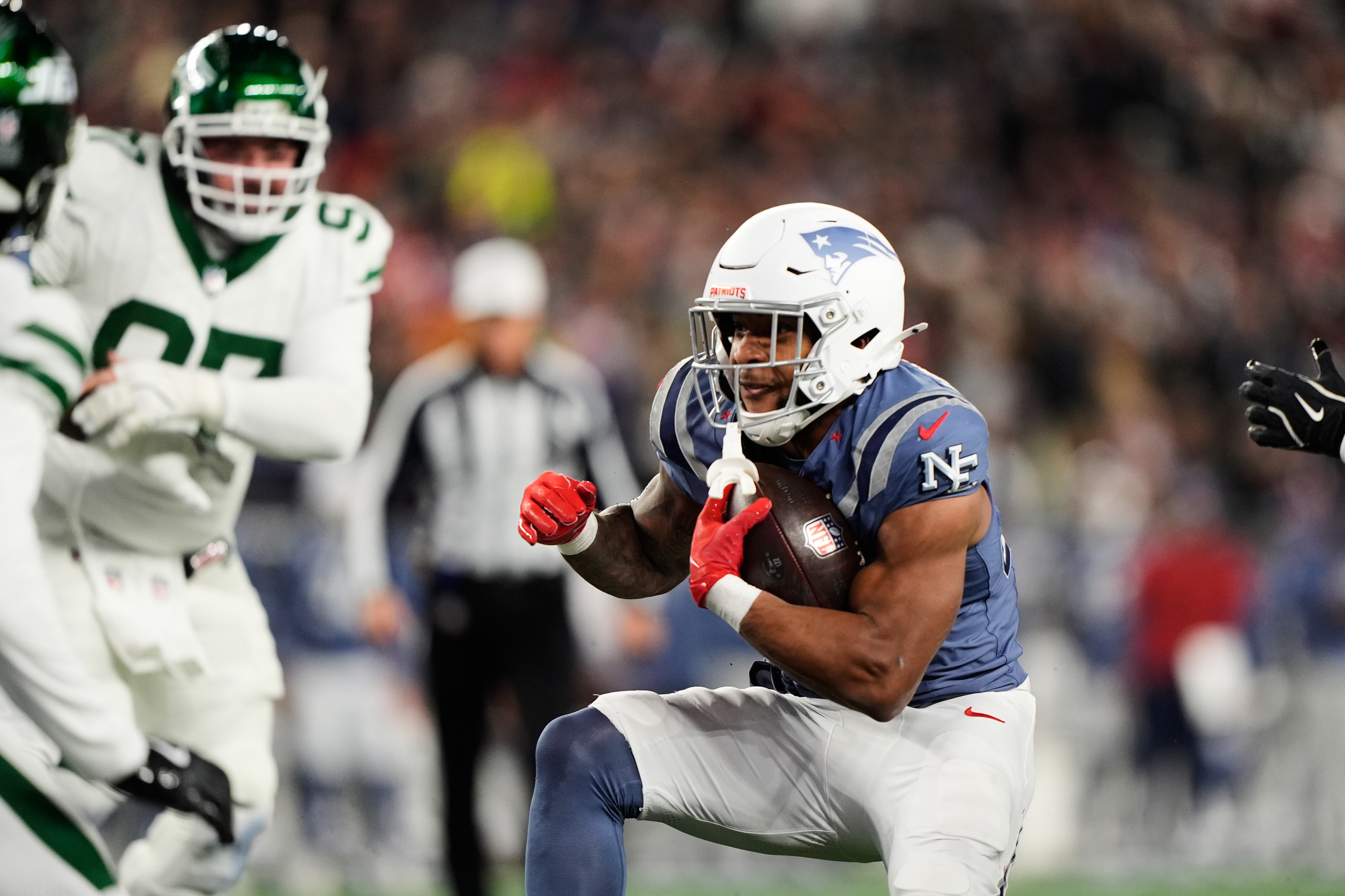 TreVeyon Henderson has scored five touchdowns in the last two weeks while taking on a bigger role for the Patriots with Rhamondre Stevenson out because of an injury. (Robert F. Bukaty/Associated Press)