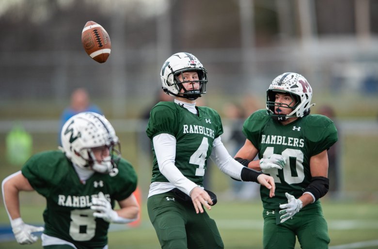 Porter’s touchdown exploited a weakness in the Raiders defense, one the Ramblers would take advantage of for the rest of the first half. Porter (6-foot-1), and fellow wide receivers Lucas Rice (6-0) and Brody Adams (5-10) had a height advantage on Winslow’s defensive backs. The mismatch gave Feith the freedom to continue to take shots down the field. He was 4 for 4 in the half.
