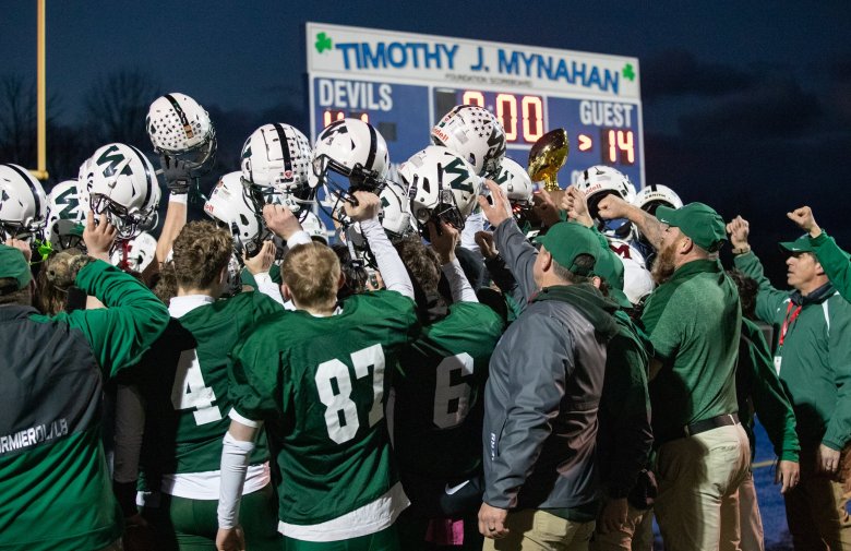 Senior quarterback Jacob Feith was 4 of 5 passing for 167 yards and two touchdowns, all in the first half. Junior running back Carter Rand added a 10-yard touchdown pass for Winthrop, which finishes with a perfect 11-0 record.