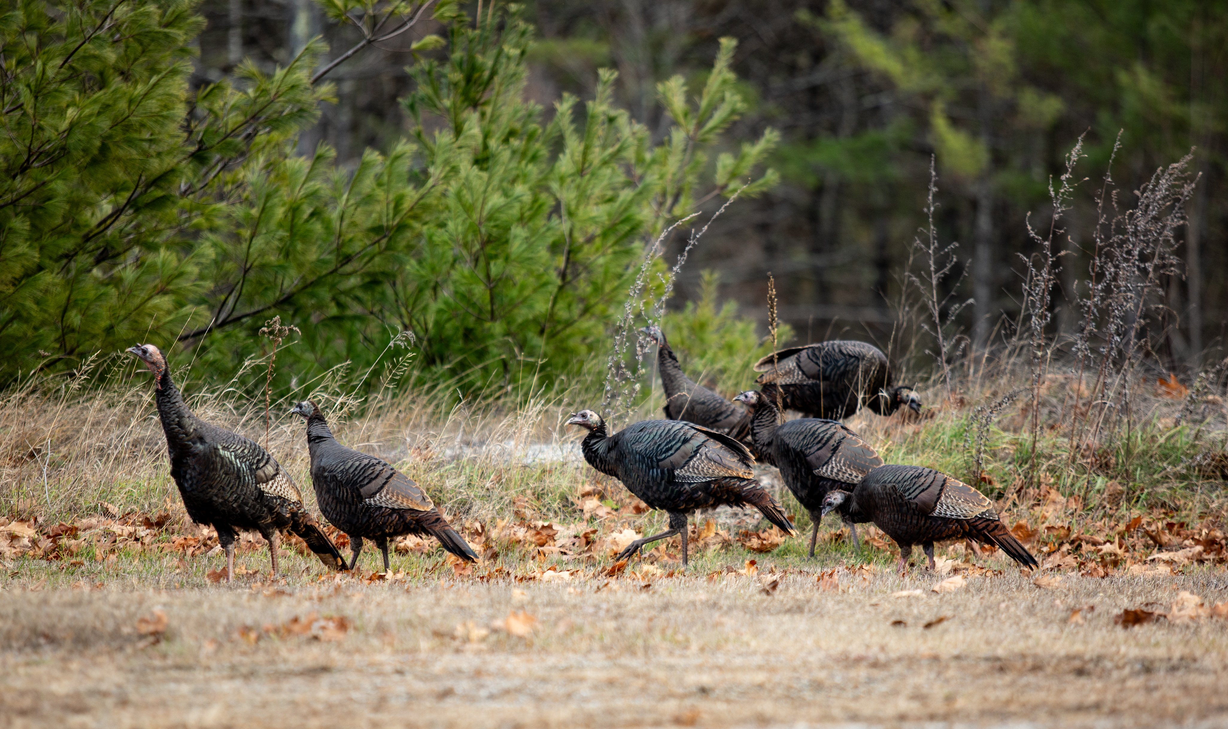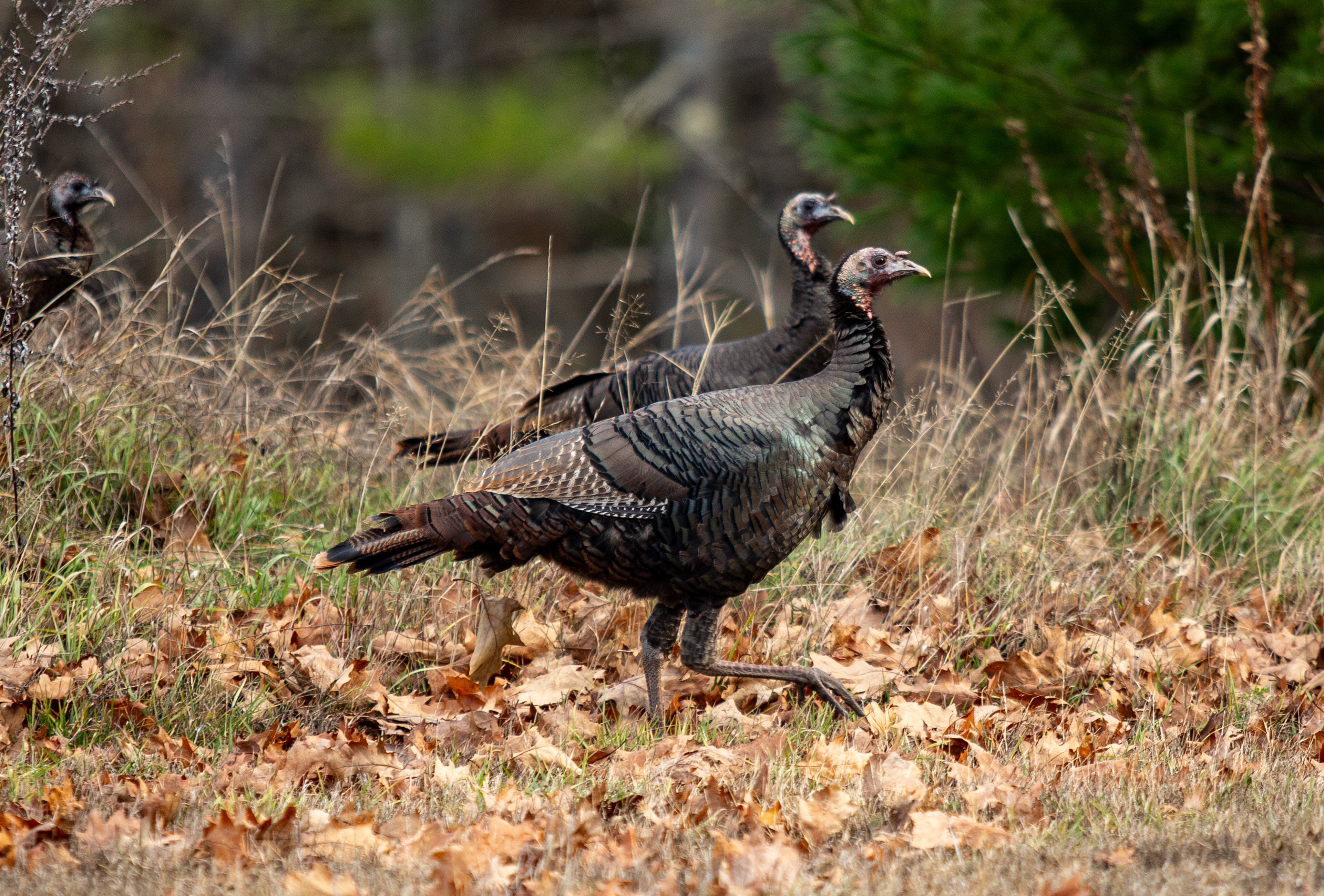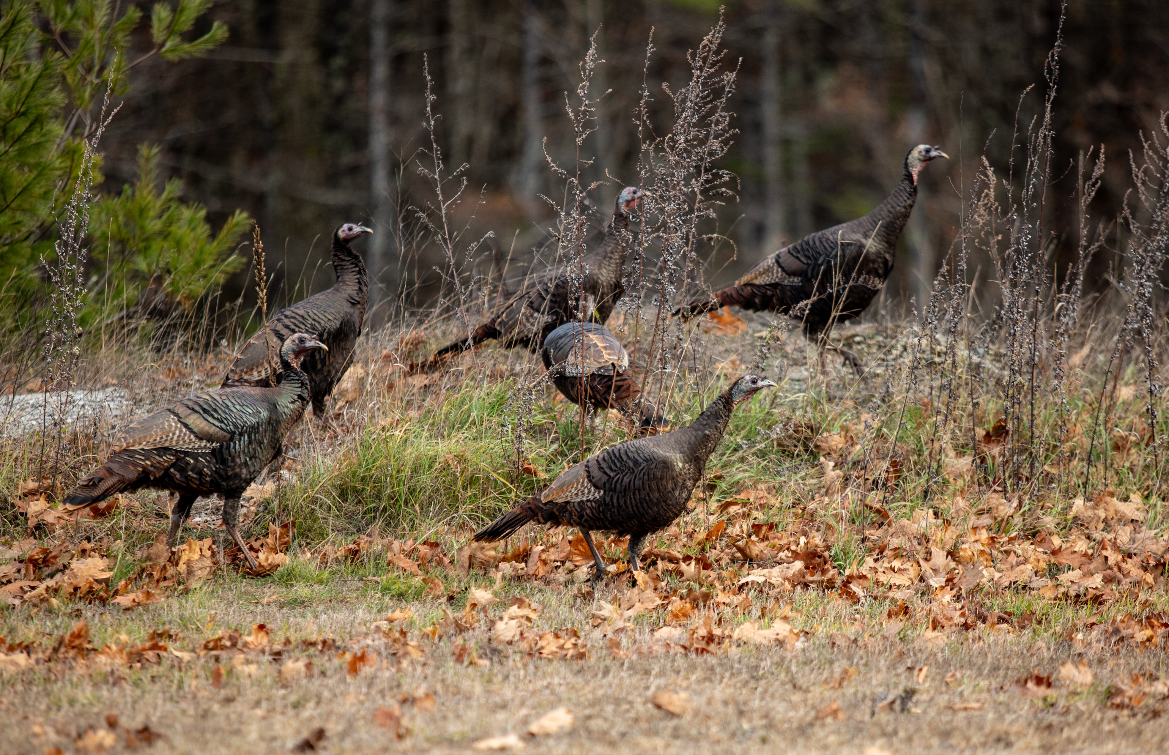 Wild turkeys graze Monday just off Route 106 in Leeds. (Libby Kamrowski Kenny/Staff Photographer)Wild turkeys, unaware of the fate that will befall many of their species later in the week, are seen Monday just off Route 106 in Leeds. (Libby Kamrowski Kenny/Staff Photographer)Wild turkeys strut their stuff Monday off Route 106 in Leeds. (Libby Kamrowski Kenny/Staff Photographer)