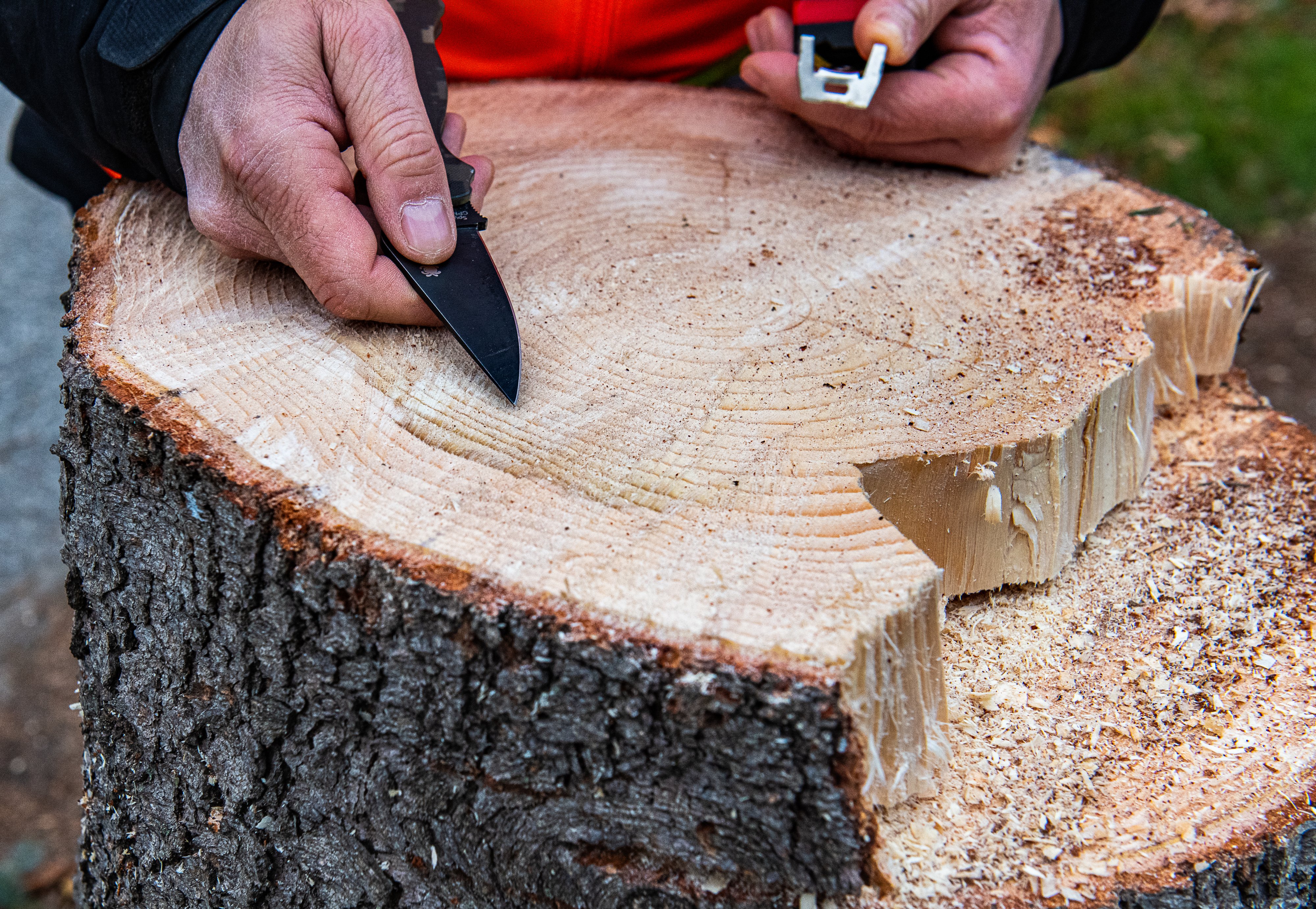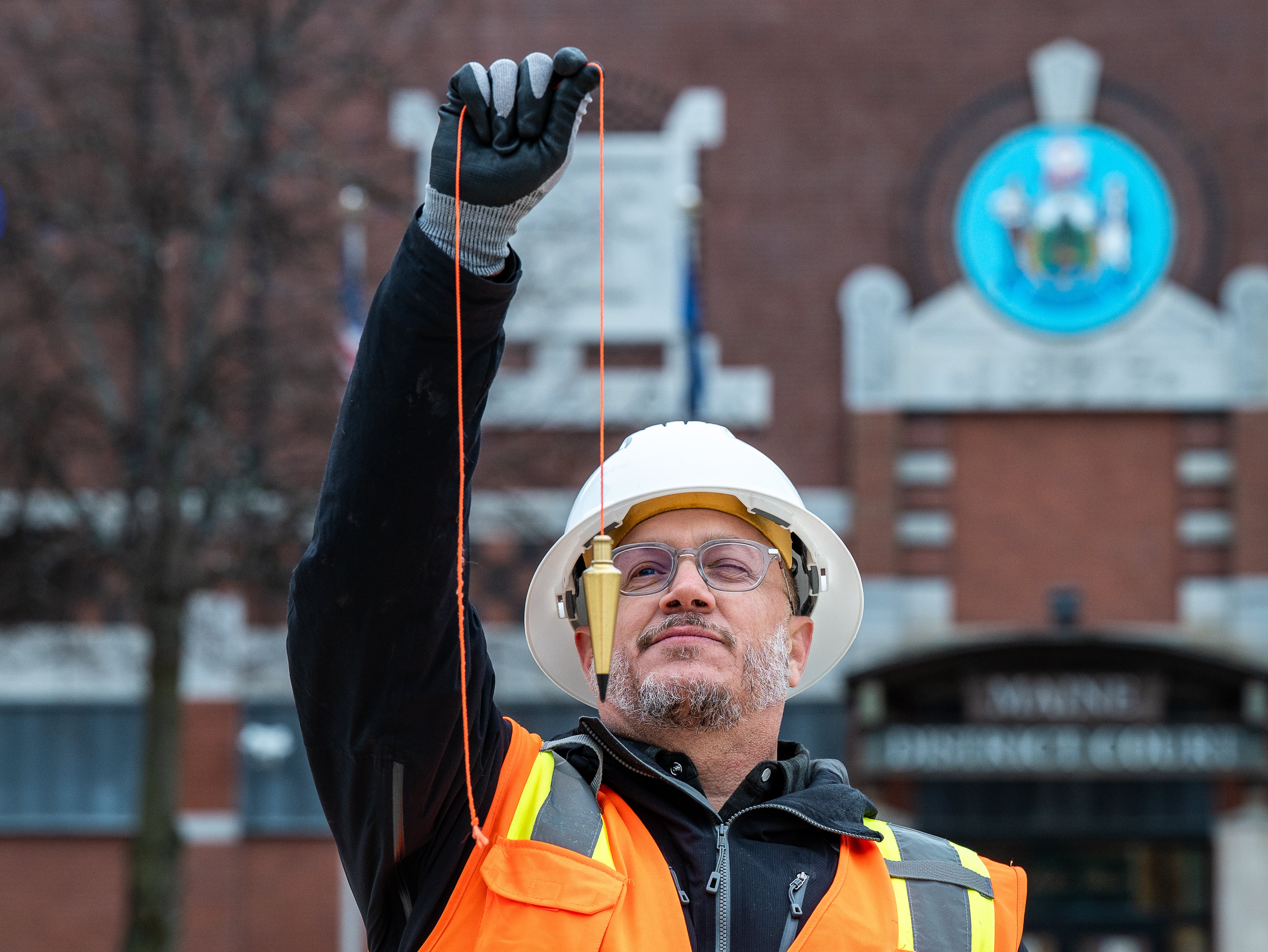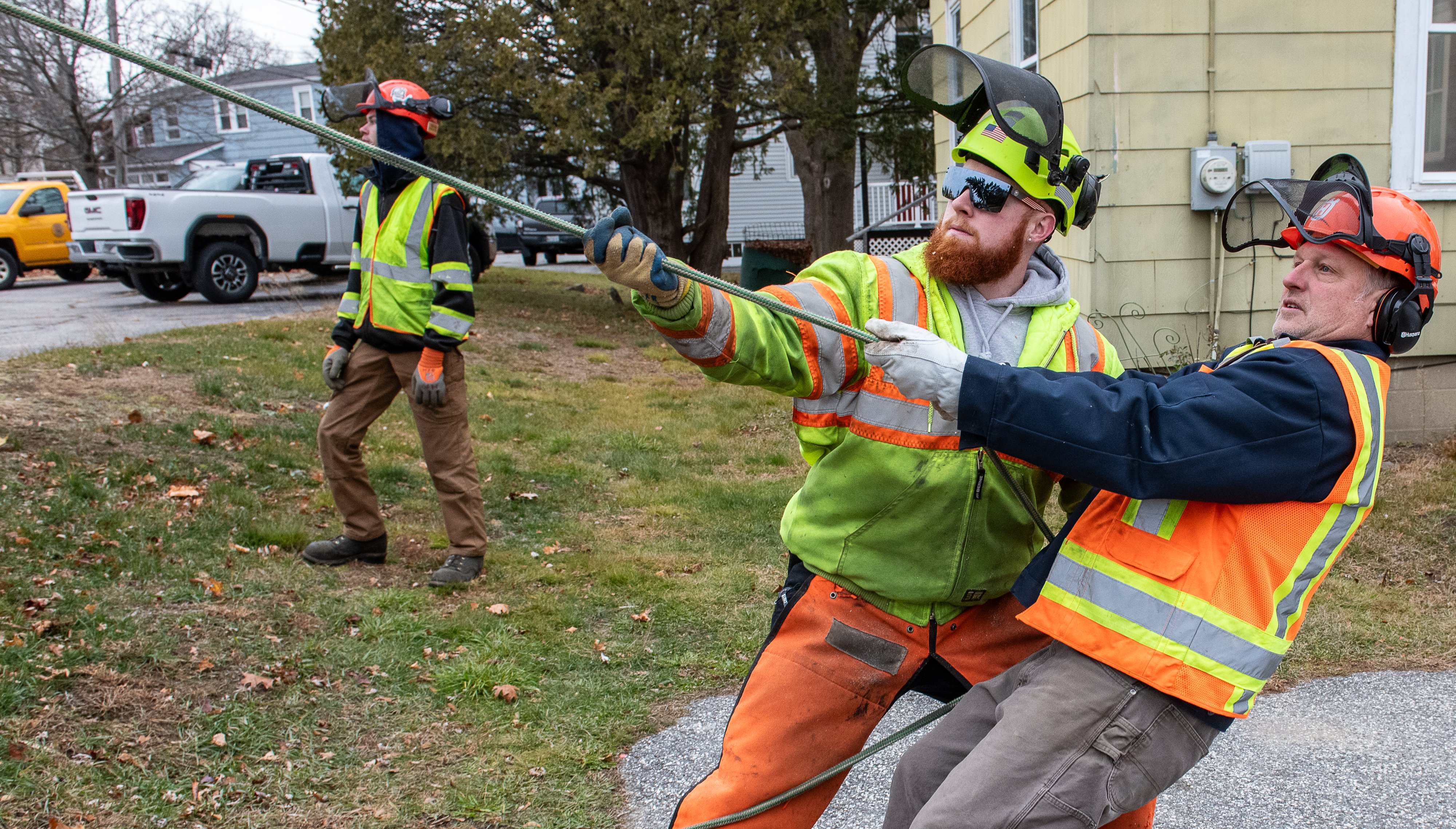 Lewiston’s city arborist, Steve Murch, right, and utility arborist, Caelan Pelletier, help guide a 4,000-pound blue spruce tree onto a tractor trailer for transport to Dufresne Plaza to become the city’s Christmas tree.Lewiston highway operations manager Reggie Poussard counts 32 rings Tuesday on the city’s Christmas tree, a 48-foot blue spruce.Lewiston Public Works employees push a utility wire over the 4,000-pound blue spruce Tuesday at the five corners intersection on Sabattus Street. (Russ Dillingham/Staff Photographer)Caelan Pelletier, a utility arborist for the city of Lewiston, cuts a 48-foot blue spruce tree Tuesday at 458 Sabattus St. in Lewiston. Soon after, it was transported to Dufresne Plaza to become the 2025 city Christmas tree. (Russ Dillingham/Staff Photographer)Lewiston highway operations manager Reggie Poussard checks Tuesday morning to see if the city Christmas tree is straight while Public Works employees set it in place at Dufresne Plaza in downtown Lewiston. Crys’Dawna Cusson, city of Lewiston executive assistant, right, records Public Works crews installing the 2025 Christmas tree in Dufresne Plaza Tuesday morning. Next to her are Public Works Director Kevin Gagne and Angelynne Amores, director of Marketing & Communications for the city. Lewiston City Arborist Steve Murch tries to release a tarp caught on a traffic signal Tuesday as the city’s giant blue spruce Christmas tree passes through an intersection on Sabattus Street.Caelan Pelletier looks in his rearview mirror as he gets signals to inch forward Tuesday morning as co-workers from Lewiston Public Works try to release a tarp covering the 48-foot blue spruce caught on a street sign at the five corners intersection on Sabattus Street. “This was definitely the longest trip since I’ve been doing this,” he said after arriving at Dufresne Plaza.Lewiston Public Works employees Danny May, left, and Nick Lebrasseur affix a star at the top of a 48-foot blue spruce tree in Dufresne Plaza on a foggy Wednesday morning in Lewiston. The tree will be wrapped in nearly 2,000 new lights that blink. The city will hold its annual Holiday At The Plaza celebration from 12-5 p.m. on Dec. 6 in Dufresne Plaza. The tree lighting will be at 4:17 p.m.