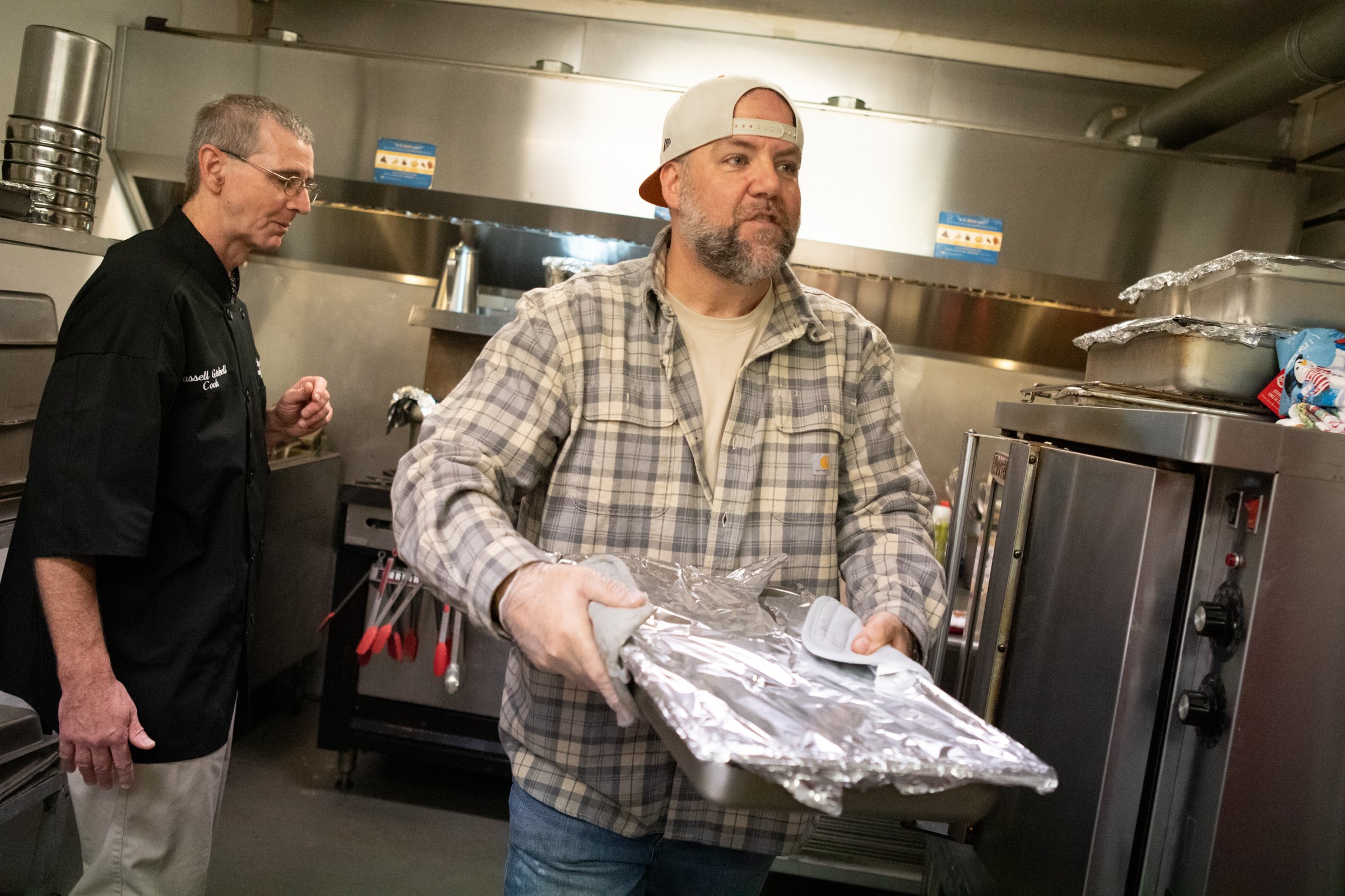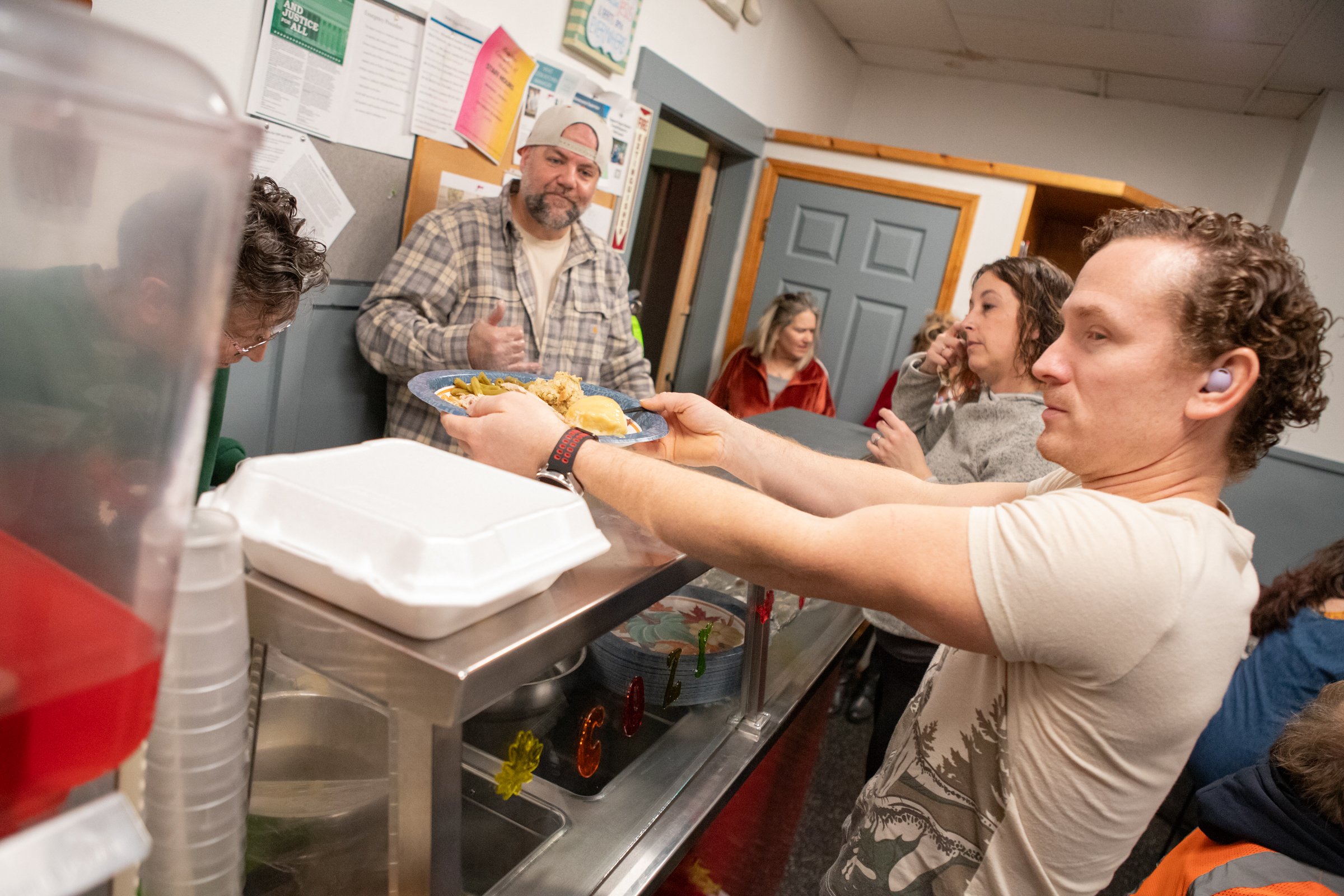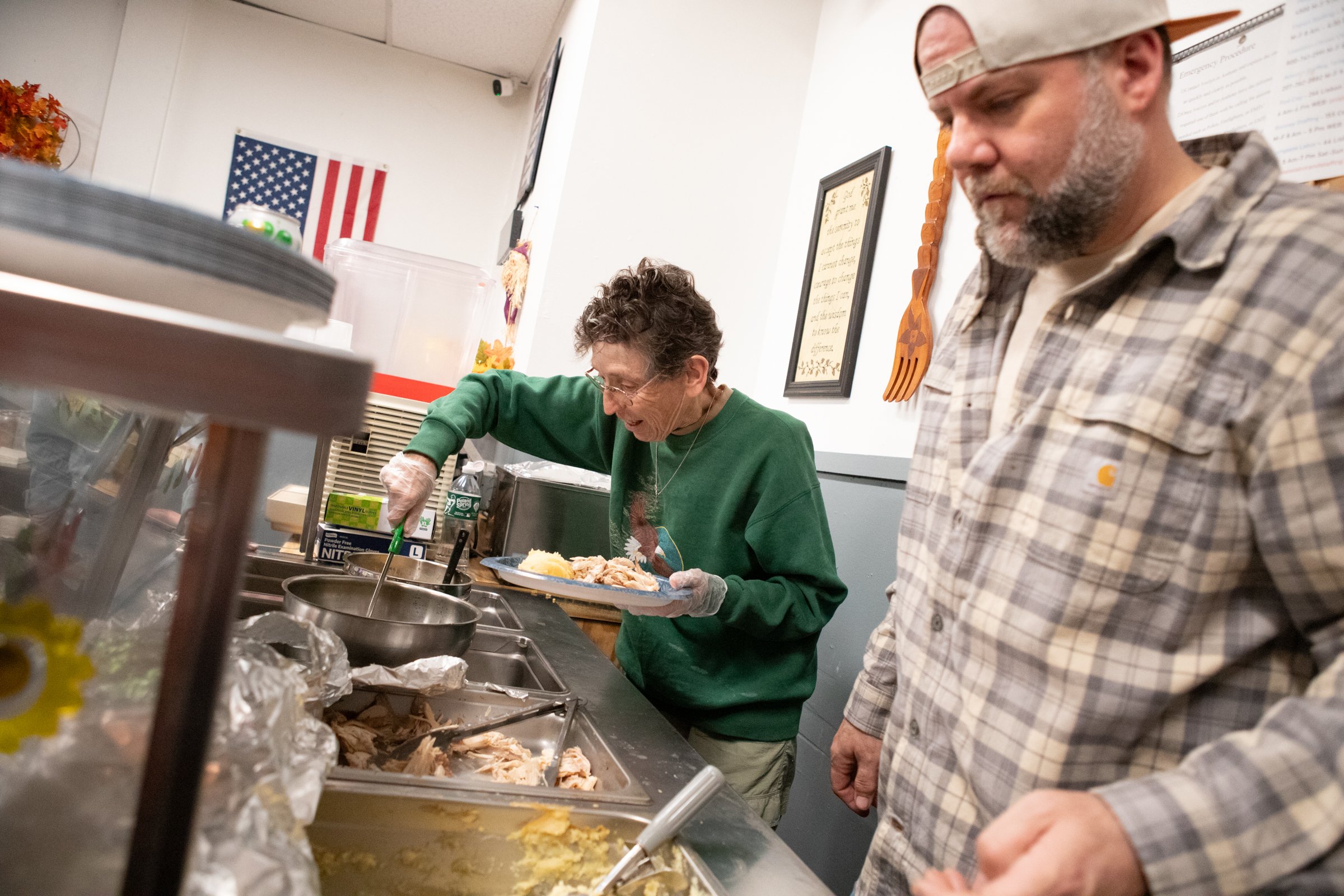 The free dinner was offered between 11 a.m. and 1 p.m. on Thursday, but food preparation began as early as 2 a.m. inside the building at the corner of Lincoln and Cedar streets.