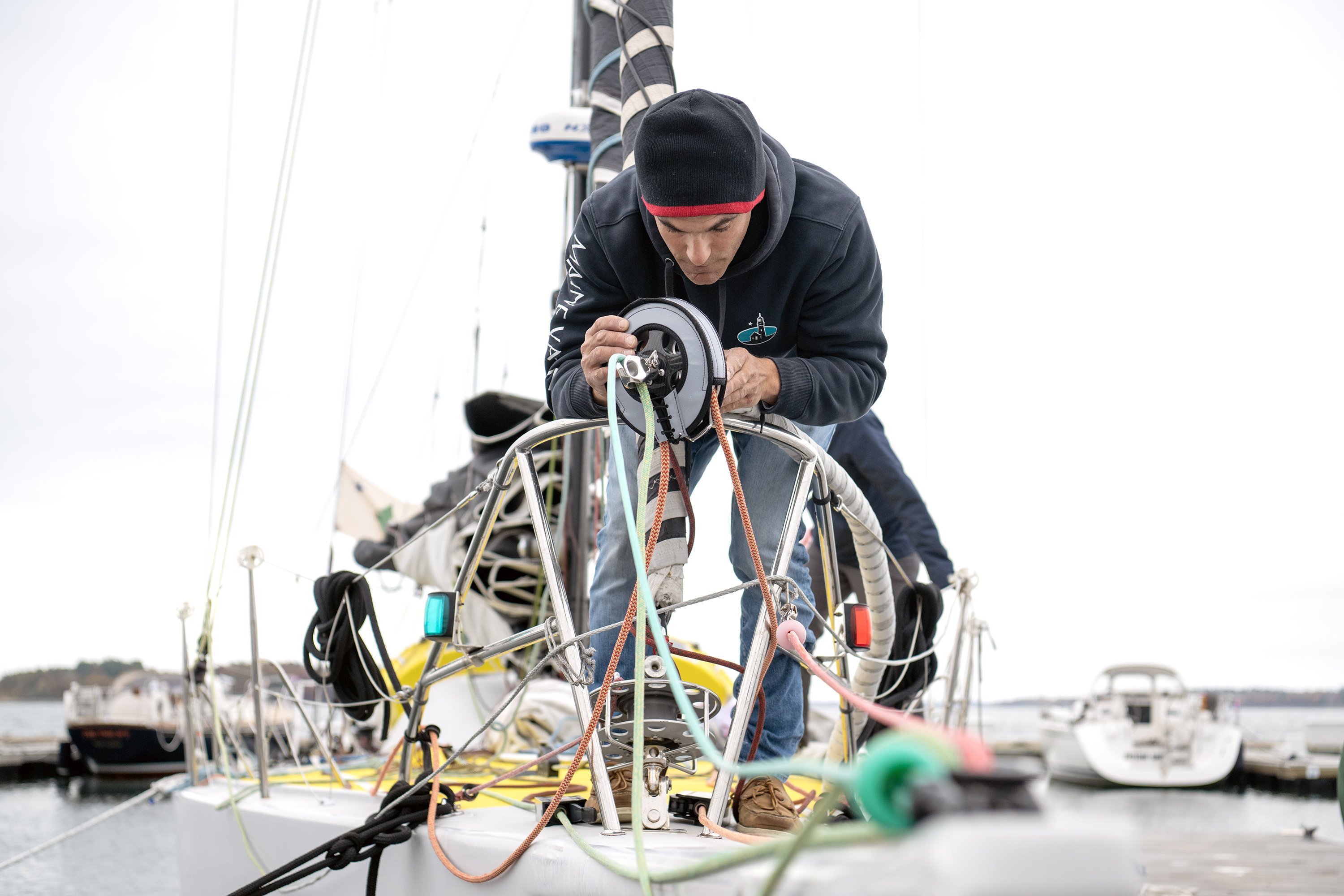 “This is a very, very special place,” Simpson said in October on the dock of the Maine Yacht Center, which regularly prepares boats for the world’s toughest sailing competitions. “The moment I decided I was going to race around the world solo, the first thing I had to do was book a one-way flight from Hawaii to Portland.”
