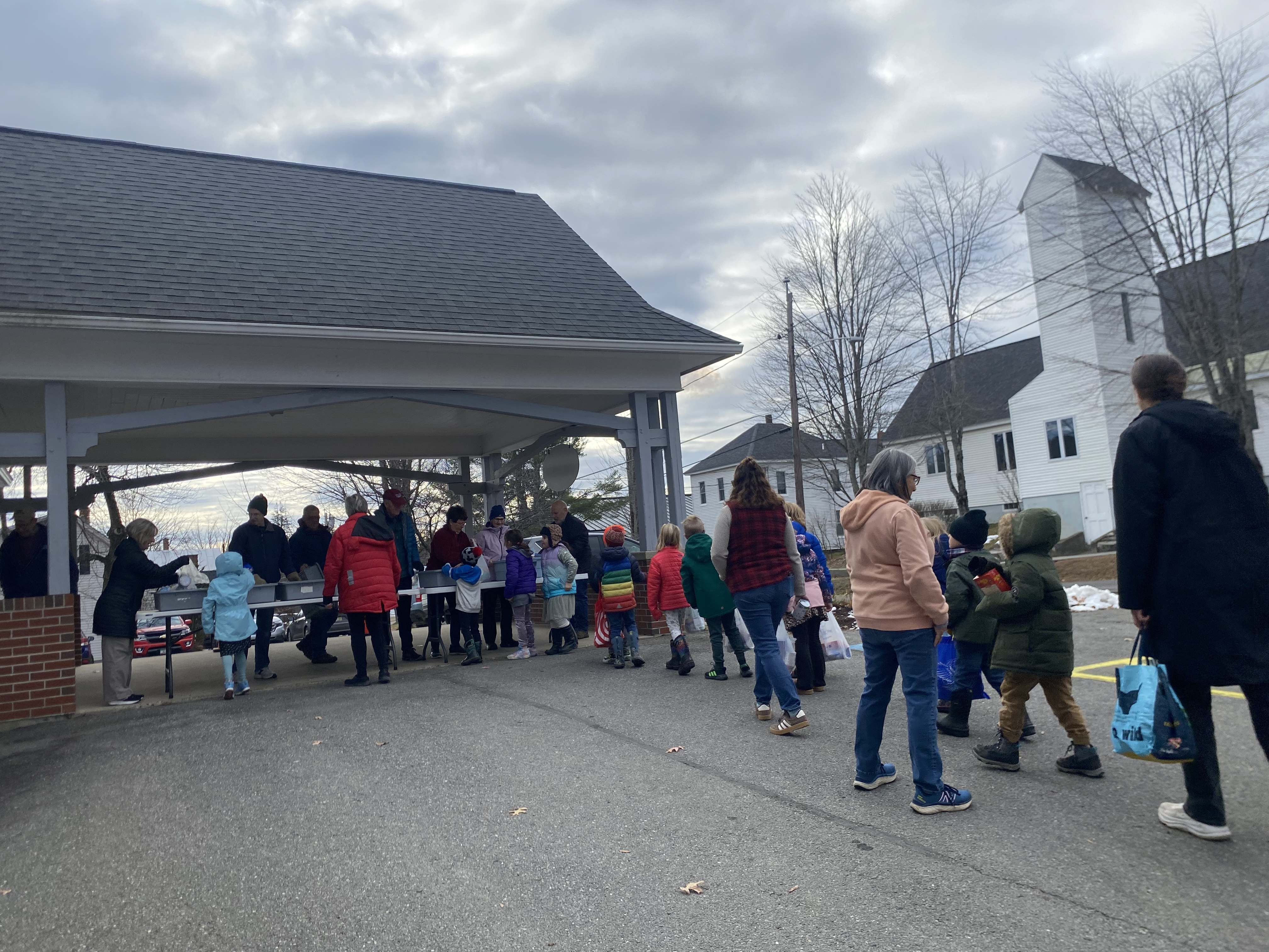 The Helping Hands program at Mallett School is a community service tradition that began in 1988. Each year, especially around the holidays, students collect food items and other donations to support local families in need. The most visible part of the program came when prekindergartners through second graders walked their donations down the street to the nutrition center near downtown Farmington and a short walk from the school, delivering hundreds of nonperishable items directly to the shelves.
