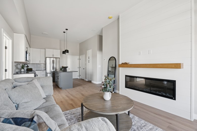 • Garages and EV charging available; walk to restaurants, stores and town center amenities