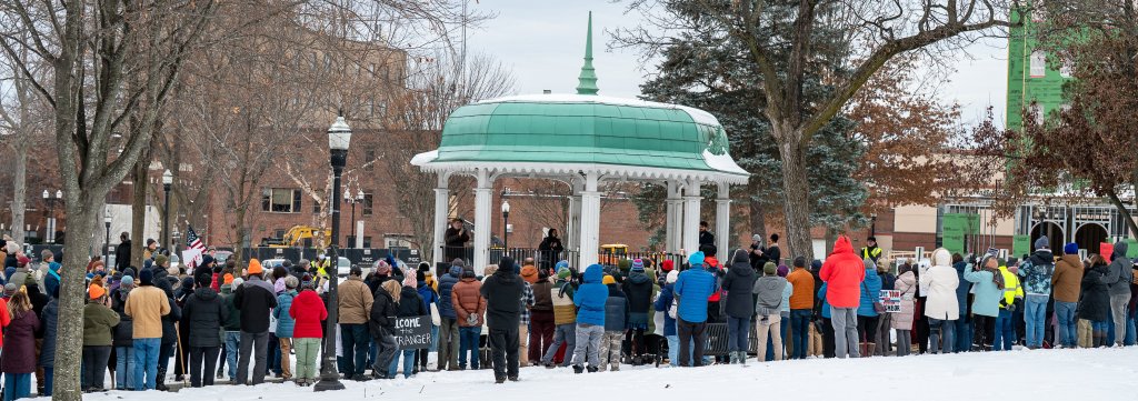 A crowd of around 400 people gathered at Kennedy Park in Lewiston on Saturday afternoon to stand in solidarity with Somali Mainers.