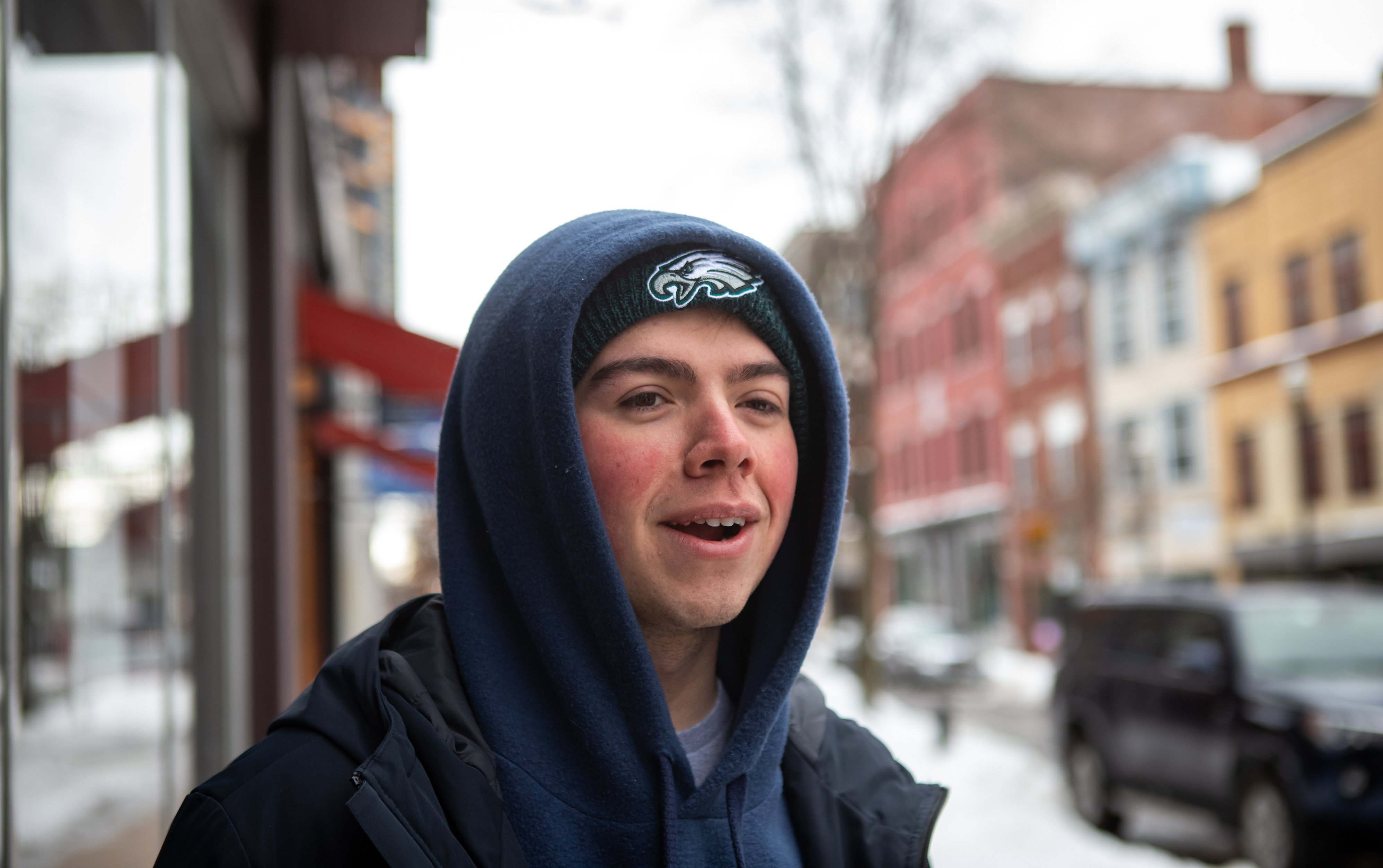 Bella Perryman of Lewiston and Max Fuoco of Cheshire, Connecticut, were braving the cold for coffee at Forage Market. Both are in their senior year at Assumption University in Worcester, Massachusetts, for nursing and marketing, respectively.