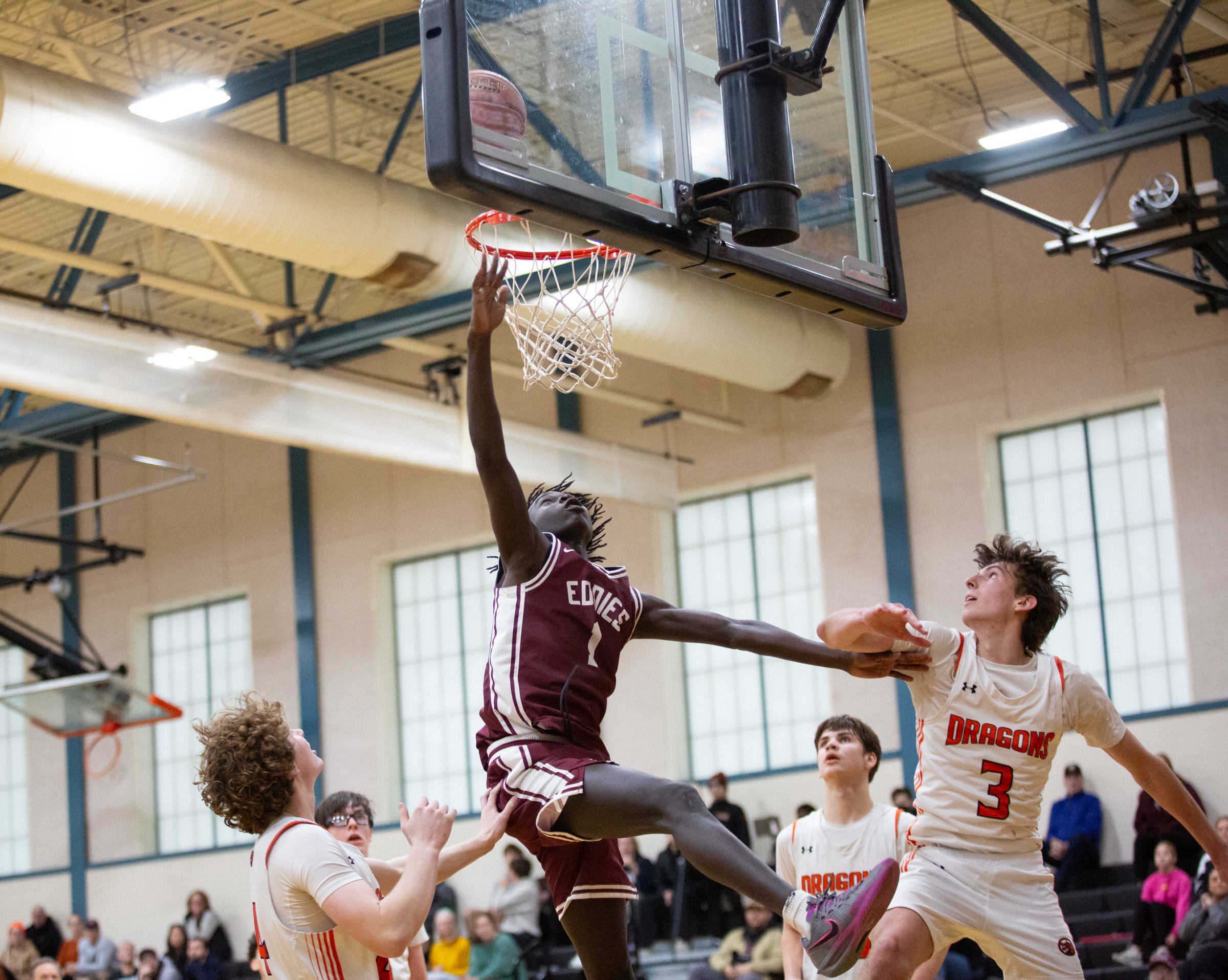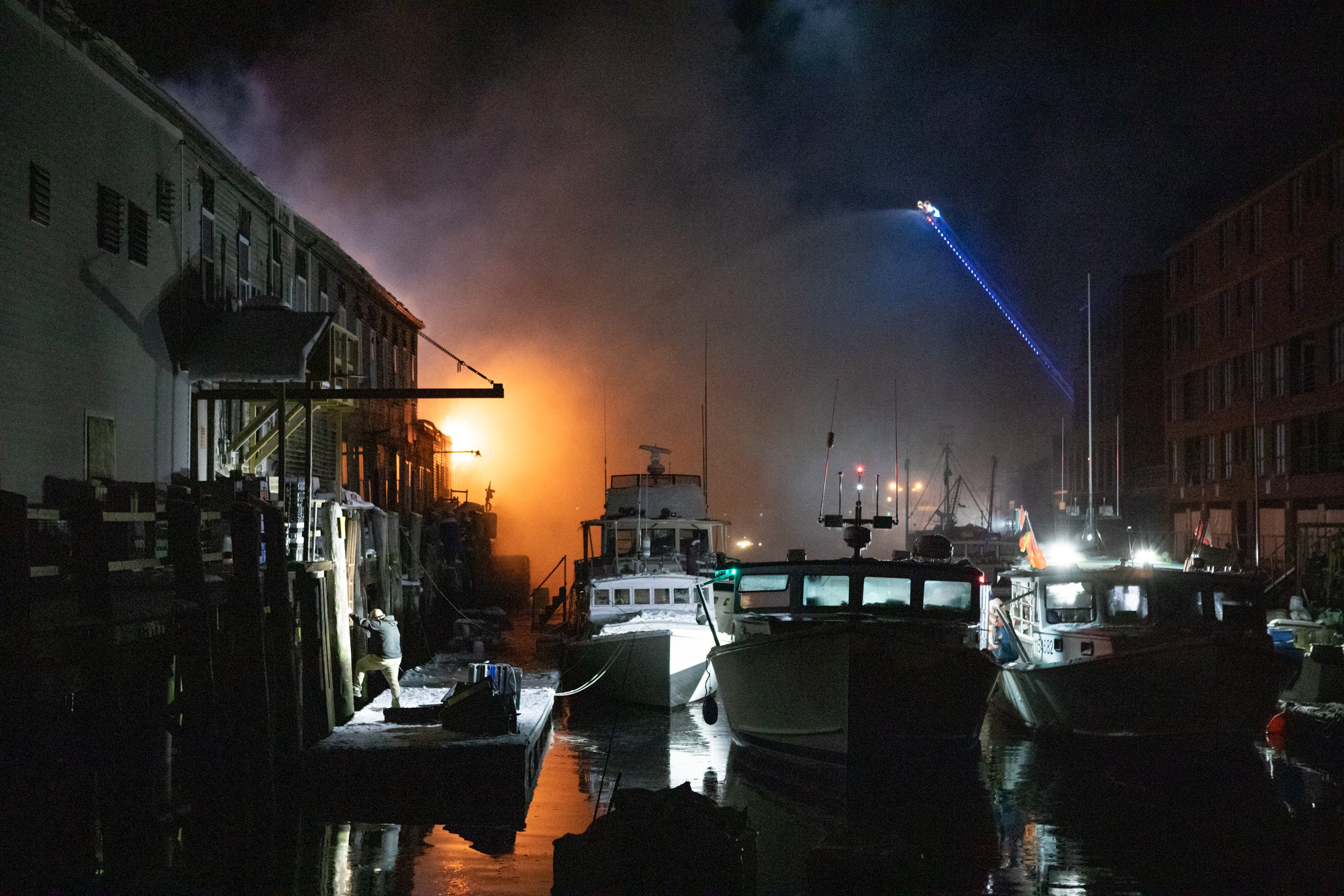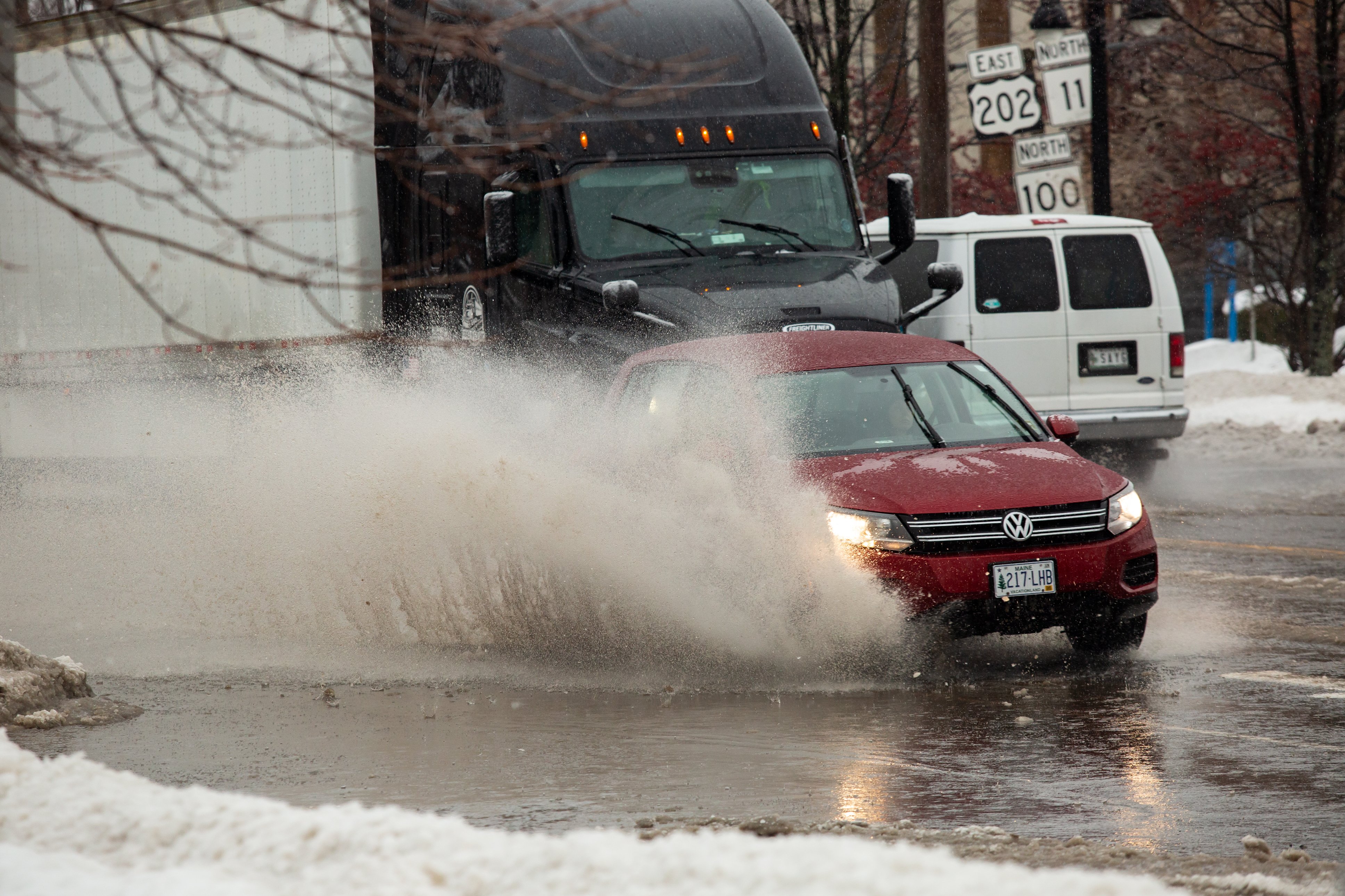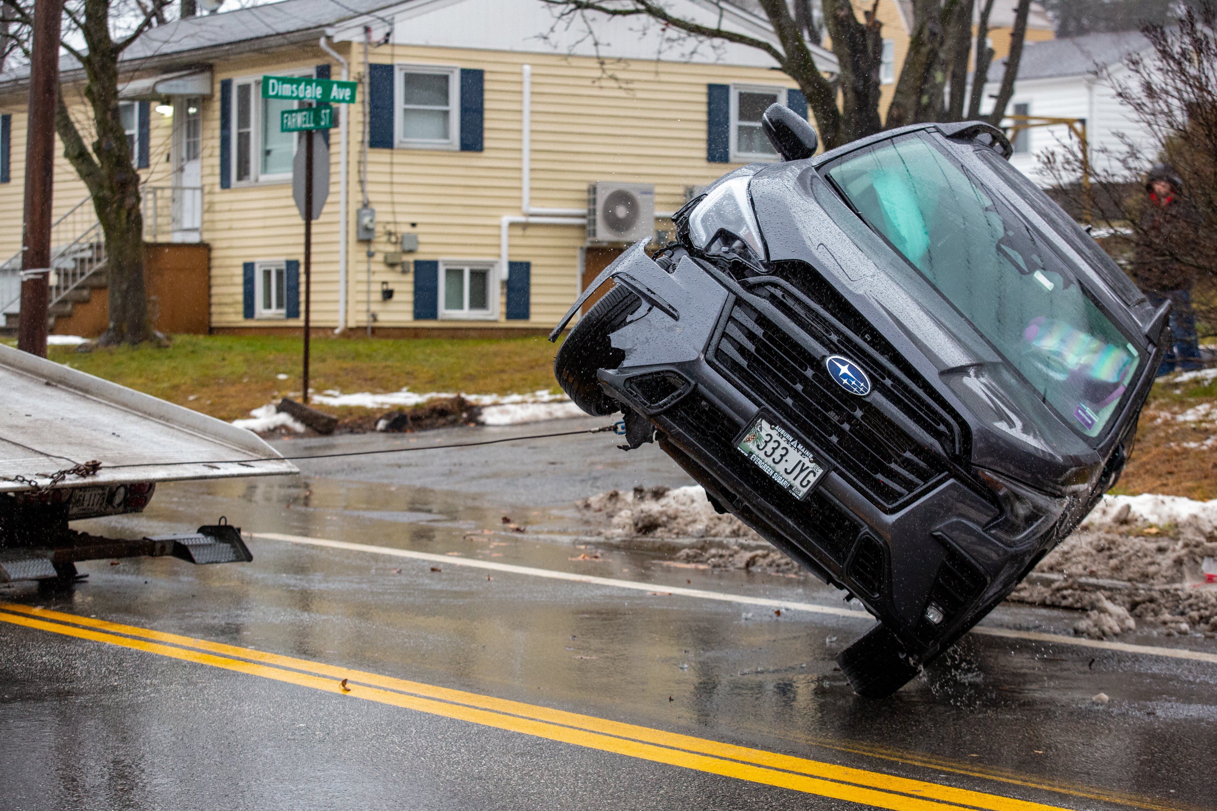 Firefighters battle a three-alarm fire Dec. 26 at 56 Commercial St. in Portland. The blaze on the waterfront destroyed one business and significantly damaged another, as well as boats docked at Custom House Wharf in the Old Port. (Libby Kamrowski Kenny/Staff Photographer)Patrick Merrill, 10, practices his ice hockey skills Dec. 22 on a pond off Grove Street on in Lewiston. His mother Maria Lindsey supervised on the ice from a folding chair when she wasn’t passing the puck or skating. (Libby Kamrowski Kenny/Staff Photographer)Vehicles kick up icy water Dec. 29 heading toward the intersection of Court and Union streets in Auburn. (Libby Kamrowski Kenny/Staff Photographer)Edward Little High School’s Akol Maiwen puts up a shot against Brunswick High School players Dec. 23 in Brunswick. The Auburn team won the contest 57-48 with 15 points from Maiwen. (Libby Kamrowski Kenny/Staff Photographer)A Subaru is righted by Dana Towing amid heavy rain and wind Dec. 19 on Farwell Street in Lewiston. Lewiston Fire Department personnel said the four occupants were taken to a local hospital with minor injuries. (Libby Kamrowski Kenny/Staff Photographer)Rowe Ford sales manager Jake Turner, left, and Mike Jeffers clear snow from vehicles Dec. 24 at the dealership in Auburn. Turner said he arrived at 4 a.m. to plow and shovel with his crew so the business could open at noon. (Libby Kamrowski Kenny/Staff Photographer)Sarah Wing snowblows the front of Washburn Elementary School in Auburn on Dec. 24. Some areas in the state got more than a foot of snow in the storm. (Libby Kamrowski Kenny/Staff Photographer)Flames erupt Dec. 26 from Maritime Antiques on Custom House Wharf in Portland. Firefighters had knocked down the three-alarm blaze by 7:30 p.m. (Libby Kamrowski Kenny/Staff Photographer)