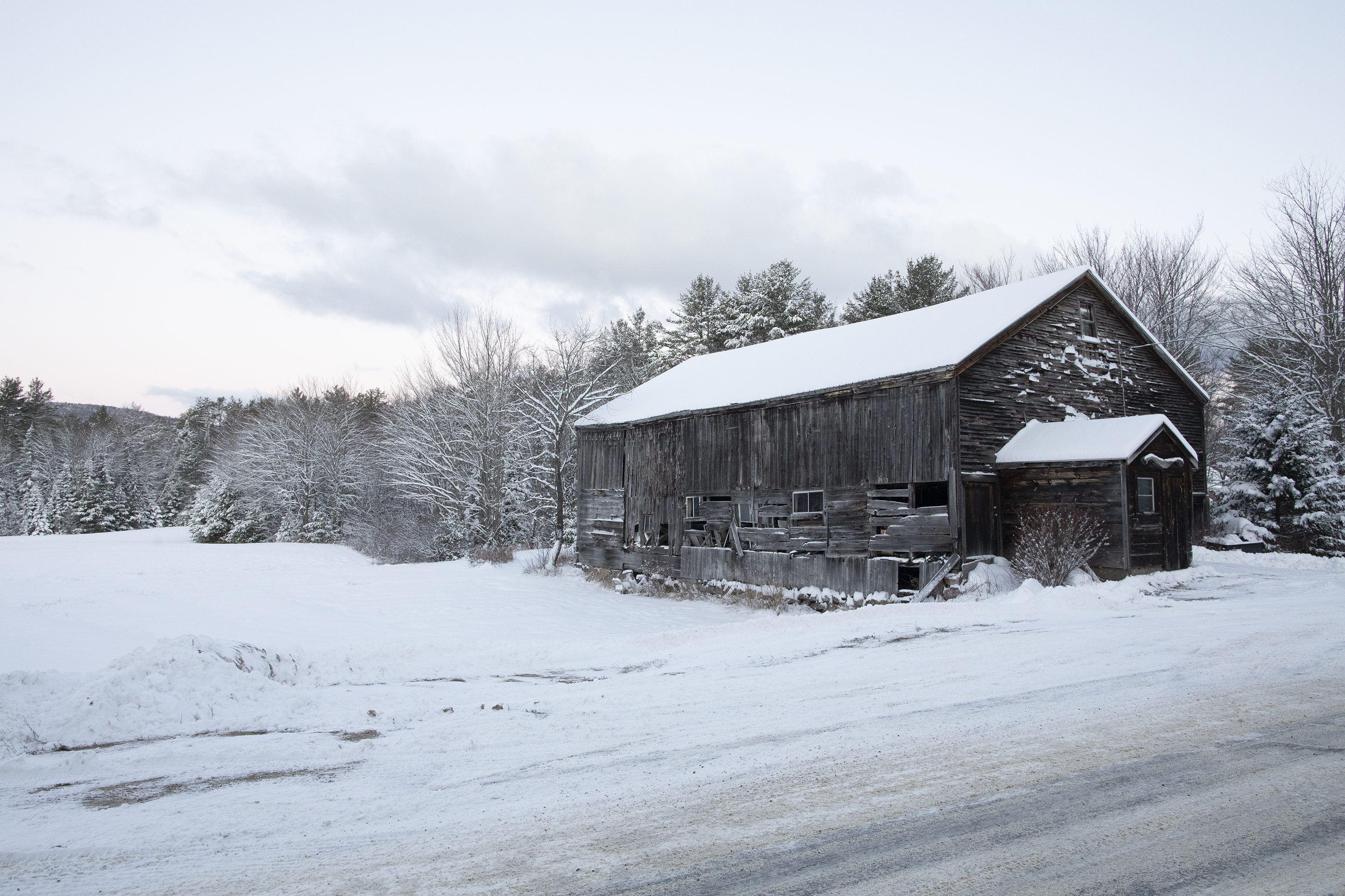A roadside barn is draped in snow on a recent morning on East Bethel Road in Bethel. (Rose Lincoln/Staff Writer)