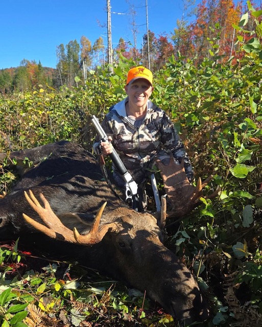 Staci said she almost asked to bump the permit to next year because of how she was feeling but decided to stick with it. The September week was hard, with temperatures in the 70s. Moose were not moving or answering to calls. Along with her husband, Staci camped and hunted hard from sunup to sundown. She passed on a small bull the first day. She saw cows and had a bull come in but couldn’t get off an ethical shot. Finally, on Saturday the stars aligned and Staci brought home a nice bull moose. She was halfway there.