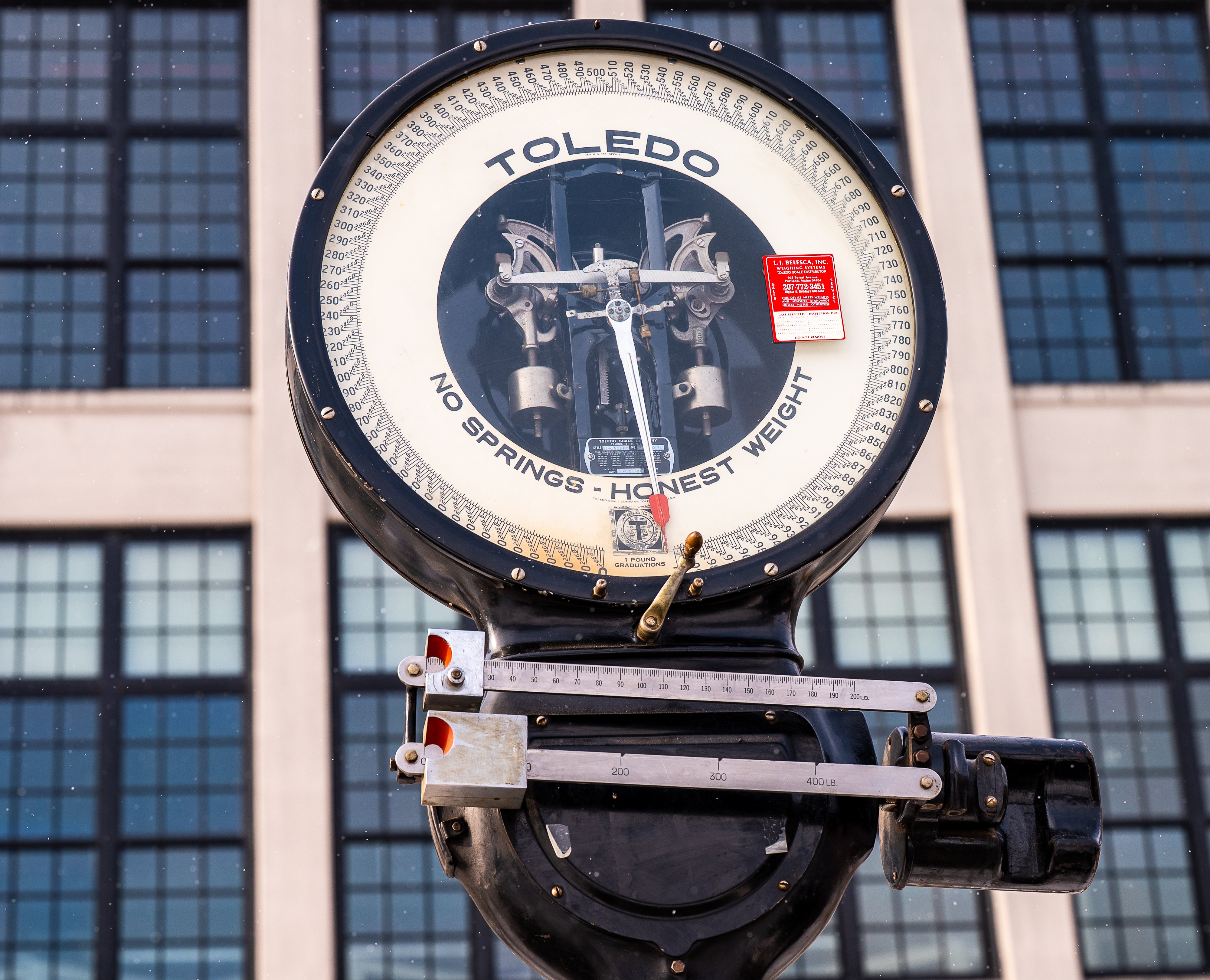 A large scale once used to weigh cotton was the first piece of history that was moved from the Bates Mill Complex Monday morning. (All photos by Russ Dillingham/Staff Photographer.)