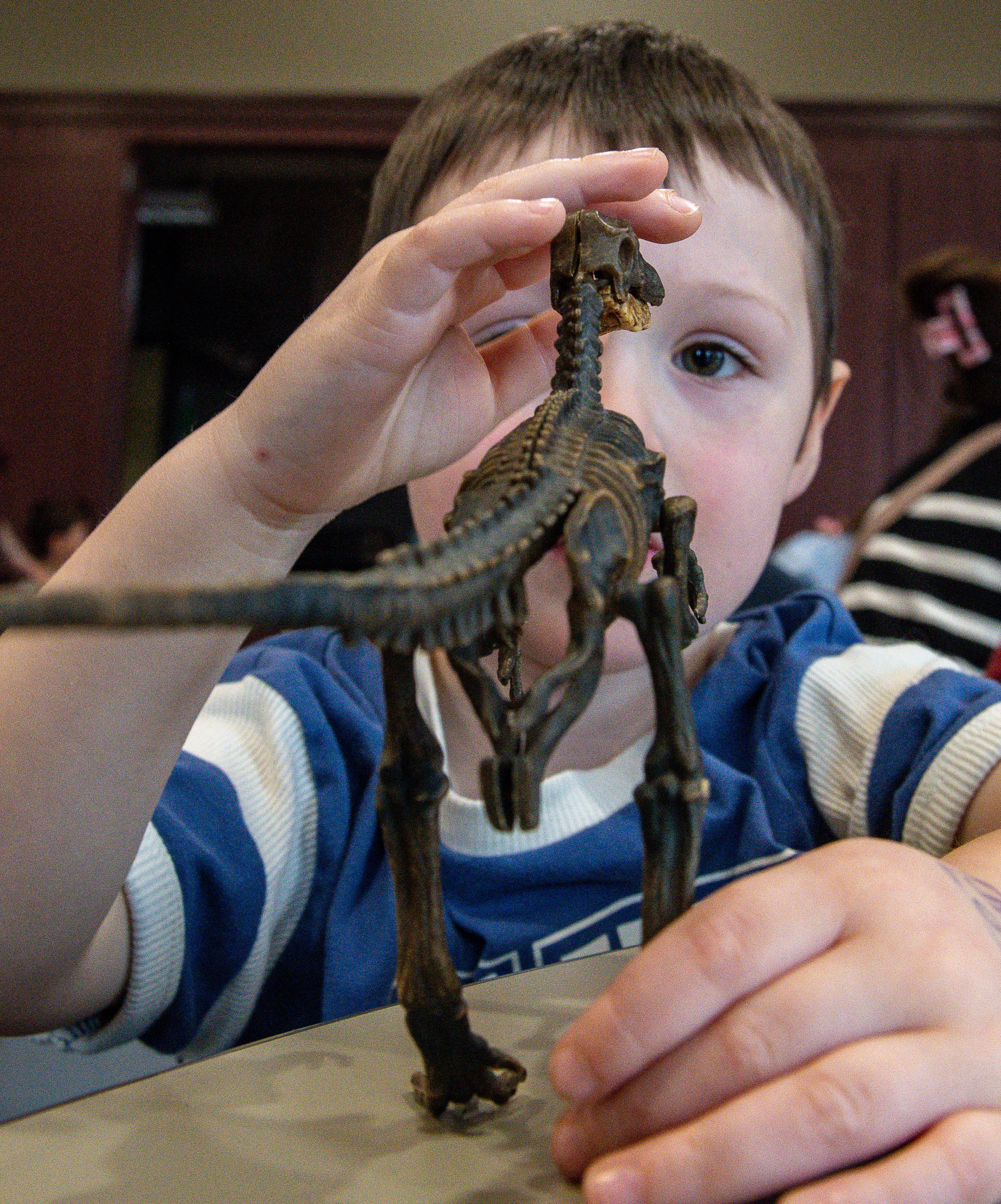 Paige Philbrick, left, Hannah McKenney, middle and Bodie McKenney check out a dinosaur tooth replica.Theodore Roy assembles a dinosaur from numerous parts.Shea Taylor examines a replica dinosaur skeleton Saturday morning during the Mad Science Dinosaur Workshop at the Lewiston Public Library.While Charlie Libby, right, digs through sand to find replica dinosaur bones, teeth and other artifacts, his friend, Zeeke Iraola drizzles sand back into the container Saturday morning during the Mad Science Dinosaur Workshop at the Lewiston Public Library.Atomic Alex from Mad Science, background in white coat, talks with Zeeke Iraola Saturday morning during the Mad Science Dinosaur Workshop at the Lewiston Public Library. (Russ Dillingham/Staff Photographer)Theodore Roy assembles a dinosaur from numerous parts Saturday morning during the Mad Science Dinosaur Workshop at the Lewiston Public Library. (Russ Dillingham/Staff Photographer)