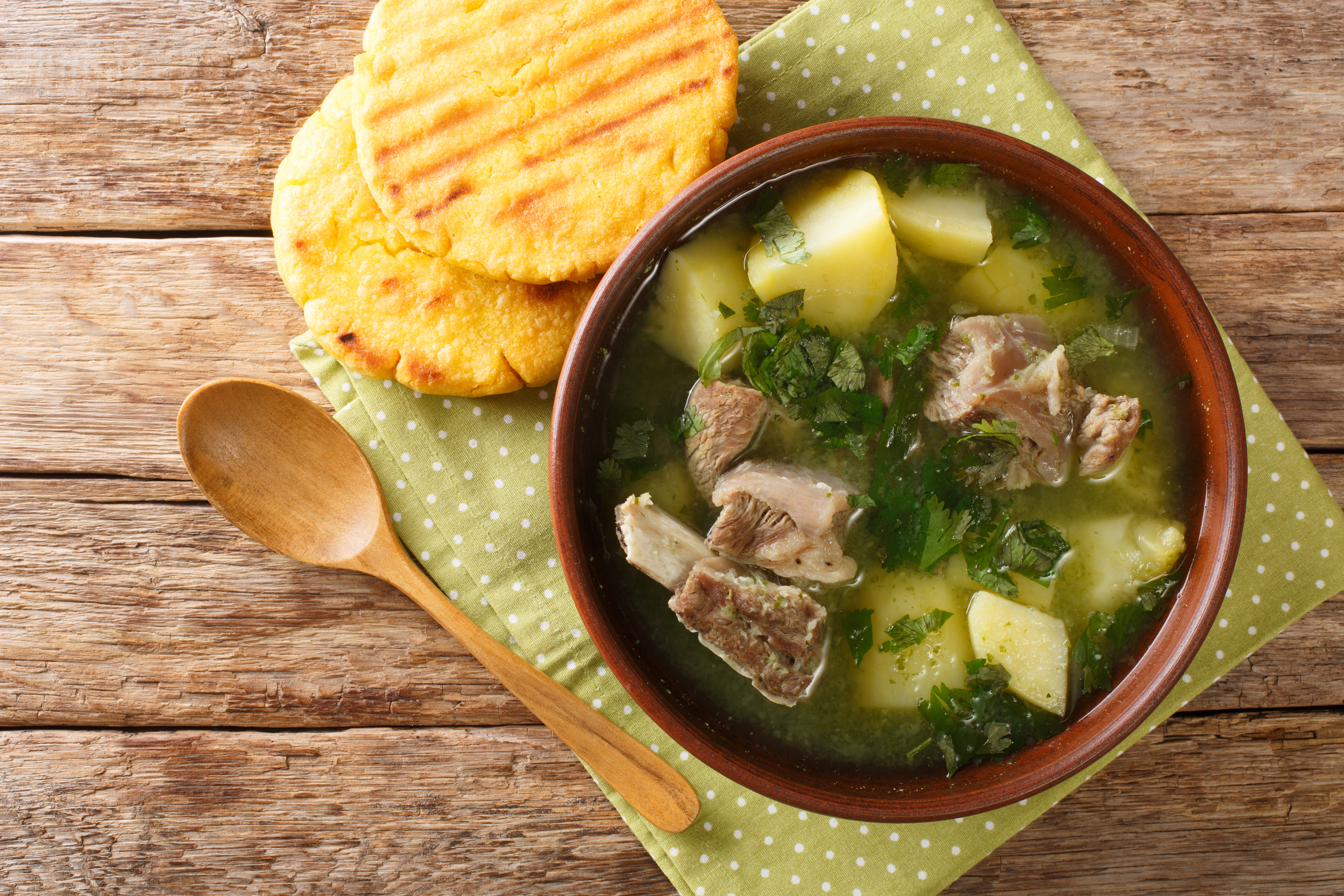 Their family’s typical remedy food is Colombian chicken soup, or caldo, with potatoes, onion and carrots. Sometimes Herrera’s mother-in-law makes a mild-flavored caldo de costilla with beef ribs and eggs poached in the broth.