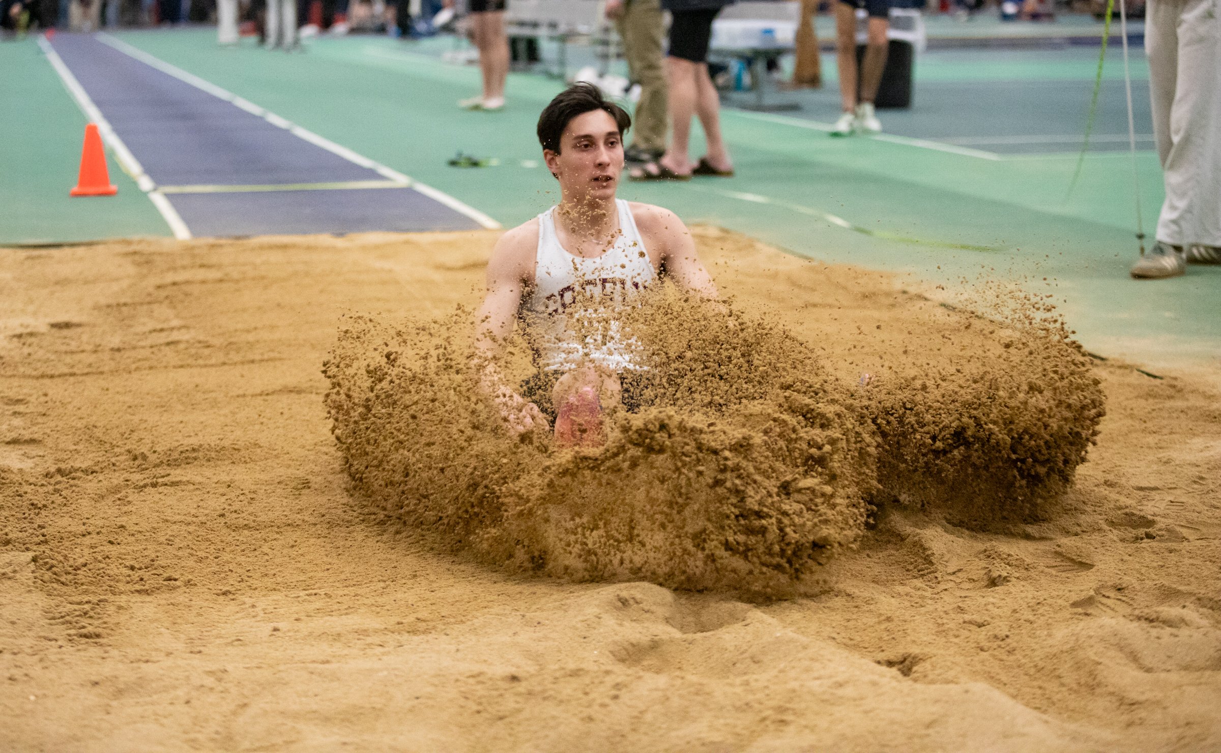 Morse’s Charlie Thelen shouts as he crosses the finish line to win the boys 200m dash Friday at the KVAC B indoor track championships in Brunswick. Thelen finished in 23.78 seconds. (Libby Kamrowski Kenny/Staff Photographer)Greely’s Connor Skillin lands in the sand on an attempt in the long jump Friday during the WMC indoor track and field state championships in Gorham. Skillin finished seventh in the event. (Libby Kamrowski Kenny/Staff Photographer)Lewiston performs during the Class A state cheering competition Saturday at the Augusta Civic Center in Augusta. (Libby Kamrowski Kenny/Staff Photographer)Deering cheerleaders provide a strong base for a flier Saturday during the Class A state cheering competition at the Augusta Civic Center in Augusta. (Libby Kamrowski Kenny/Staff Photographer)The Basilica of Saints Peter and Paul is framed through large icicles from the Sun Journal rooftop Monday in Lewiston. (Libby Kamrowski Kenny/Staff Photographer)Edward Little’s Jaret Powers passes the puck off the boards against the Poland co-op on Monday in Auburn. Edward Little won 2-0. (Libby Kamrowski Kenny/Staff Photographer)Traip Academy’s Madelyn Rohan passes the ball to teammate Rorie Ford during a game Tuesdsay against Dirigo in Dixfield. Dirigo won 56-38. (Libby Kamrowski Kenny/Staff Photographer)No flight delays here: a turkey takes off from a tree to follow fellow turkeys Wednesday toward the Androscoggin River in Durham. According to the National Weather Service, Durham received 2.3 inches of snow. (Libby Kamrowski Kenny/Staff Photographer)Stephanie Bernatchez puts the finishing touches on a chocolate covered strawberries Wednesday morning at Maine Gourmet Chocolates on Main Street in Auburn. (Russ Dillingham/Staff Photographer)Students at Spruce Mountain Elementary School slide down a hill Thursday morning behind the school, off Route 4 in Jay. They were enjoying a sunny and relatively warm day after weeks of brutally cold weather. Seasonable temperatures should continue through the weekend. (Russ Dillingham/Staff Photographer)Bates College is planning a $45 million upgrade to its athletic facilities, including the Clifton Daggett Gray Athletic Building, bottom left, and the connected Alumni Gymnasium, middle right, as seen Thursday. (Russ Dillingham/Staff Photographer)