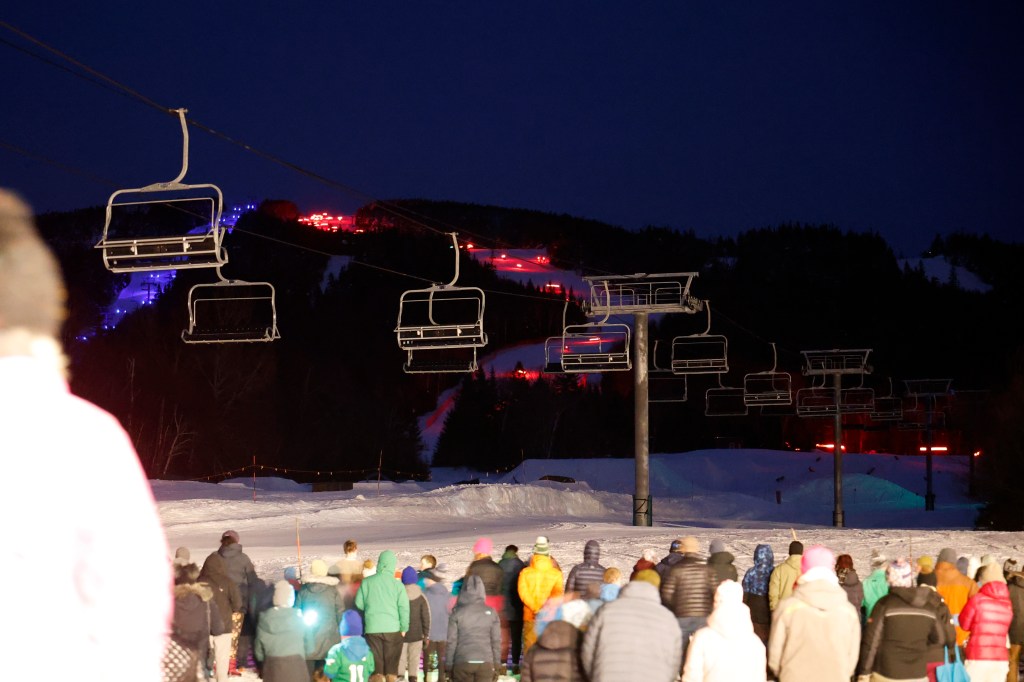 Hundreds packed Saddleback Mountain on Friday to celebrate the 5th annual February Festival, marking the end of Maine’s school vacation week. The all-day event included live music, slopestyle skiing, fireworks and a torchlight parade on the mountain after dusk.