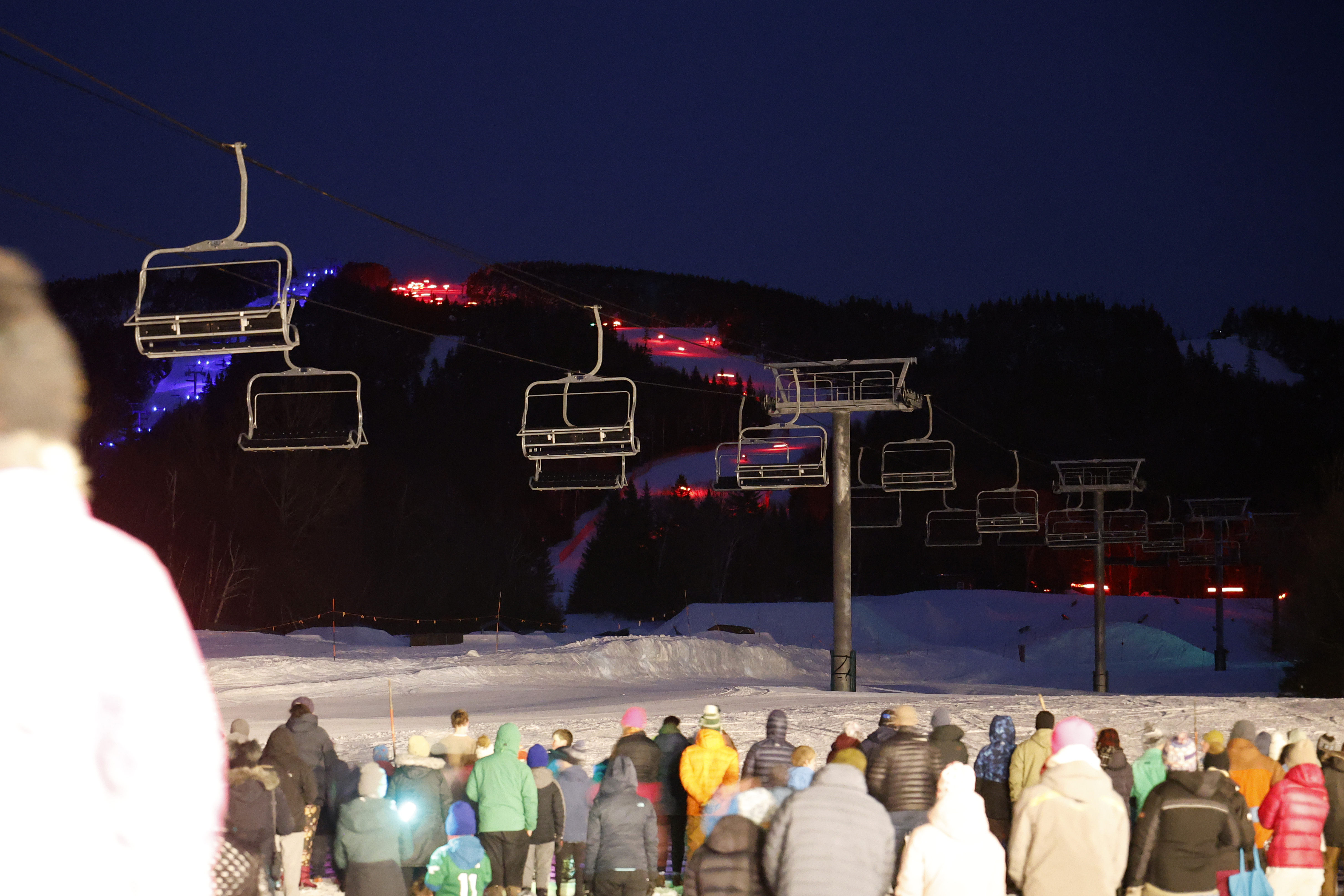 Hundreds packed Saddleback Mountain on Friday to celebrate the 5th annual February Festival, marking the end of Maine’s school vacation week. The all-day event included live music, slopestyle skiing, fireworks and a torchlight parade on the mountain after dusk.