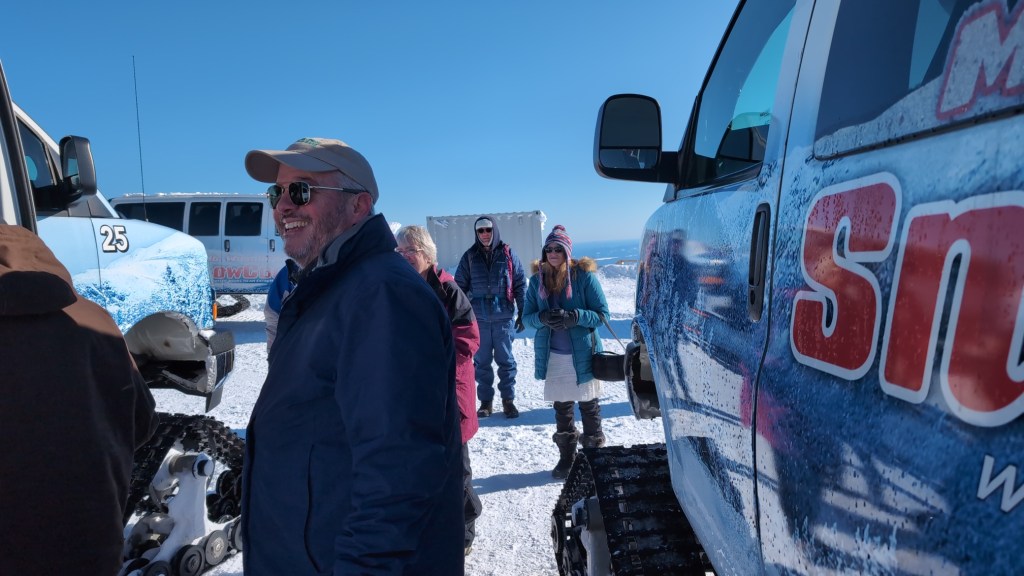 The commentary blends historical facts with humor. On tight switchbacks, the driver added playful remarks while carefully navigating the turns, helping passengers appreciate both the steep terrain and the unusual winter access to the summit. Approaching one sharp turn, he quipped that he liked to take it at “50 mph,” calling it “the highlight of the trip.”