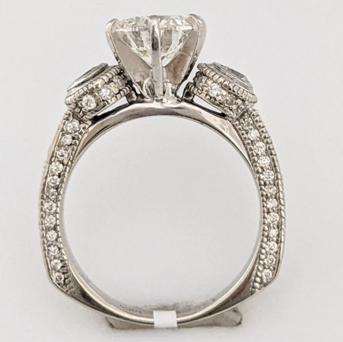 Estate jewelry is more than buying a vintage or pre-loved piece at a lower price point. Each one brings a history, adding to the mystique and romanticism of such a special purchase. The jeweler may or may not know the back story, so perhaps you can dream up your own. This ring has a 2.77 carats total with a 2.01 carat center stone set in 14K white gold.